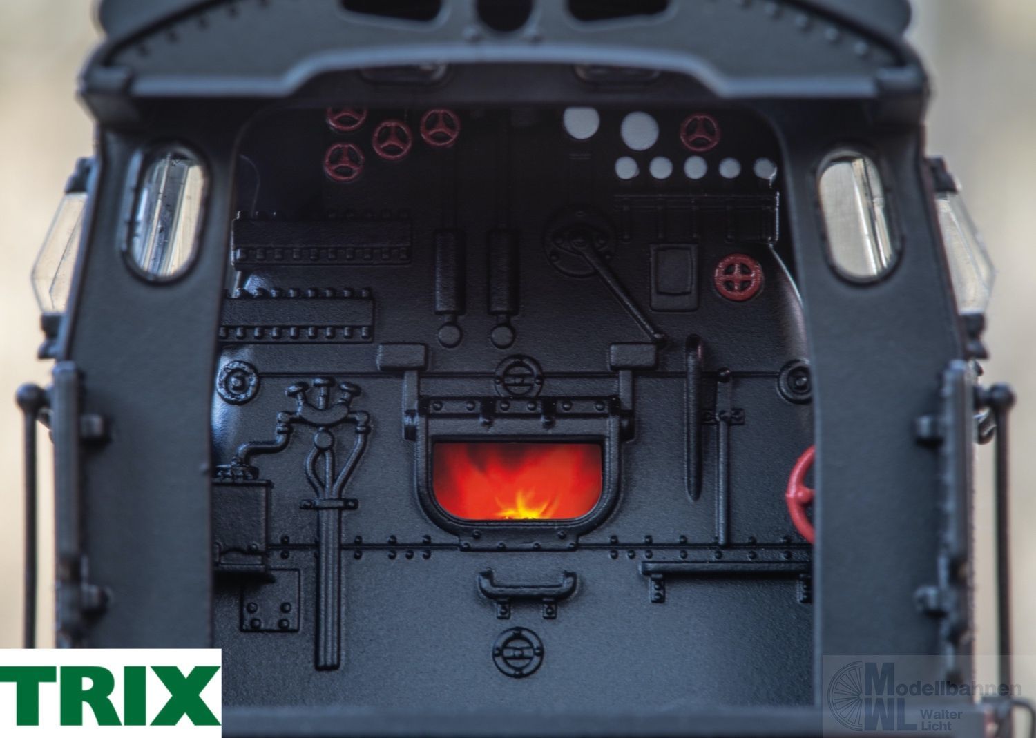 Komplette Neuentwicklung.Besonders filigrane Metallkonstruktion.Eine Vielzahl angesetzter Details.Pufferhöhe an Lok und Tender nach NEM.Serienmäßiger Raucheinsatz mit geschwindigkeitsabhängigem, dynamischem Rauchausstoß.Führerstandbeleuchtung, Fahrwerkbeleuchtung und Feuerbüchsenflackern digital schaltbar. RailCom-fähiger DCC/mfx Digital-Decoder mit umfangreichen Betriebs- und Sound-Funktionen.Umklappbares Übergangsblech zwischen Führerhaus und Vorderseite Tender.