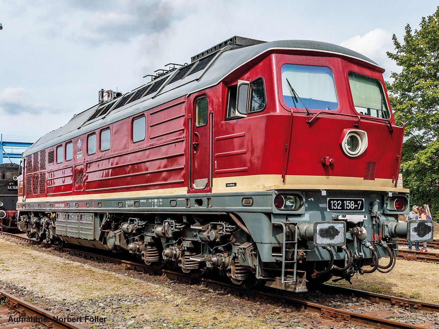 Mit den BR 132/232 offeriert PIKO ein weiteres hochdetailliertes Modell eines DR-Klassikers. Das PIKO Modell überzeugt durch den gelungen Formenbau und die originalgetreue Umsetzung aller relevanten Details der jeweiligen Vorbildmaschine. Die PIKO Modelle der Baureihen 132 der DR bzw. 232 der Deutschen Bahn AG zeichnen sich u.a. durch feinste Lackierung und Bedruckung, freistehende Griffstangen, einen Zinkdruckgussrahmen und einen kräftigen fünfpoligen Motor aus, der in Kombination mit zwei ausgewuchteten Schwungmassen ausgeglichene Laufeigenschaften garantiert. Die Beleuchtung erfolgt mittels LEDs. Die Führerstandsbeleuchtung und das Schlusslicht lassen sich mit einem PluX22 Decoder digital schalten. Das Modell verfügt über zwei Haftreifen, die in diagonaler Anordnung auf den inneren Achsen der beiden Drehgestelle sitzen. Die Stromabnahme erfolgt über sämtliche Räder. Das Modell wird mit einer PluX22-Schnittstelle geliefert, eine Soundnachrüstung mit größtmöglichem Lautsprecher ist vorbereitet.