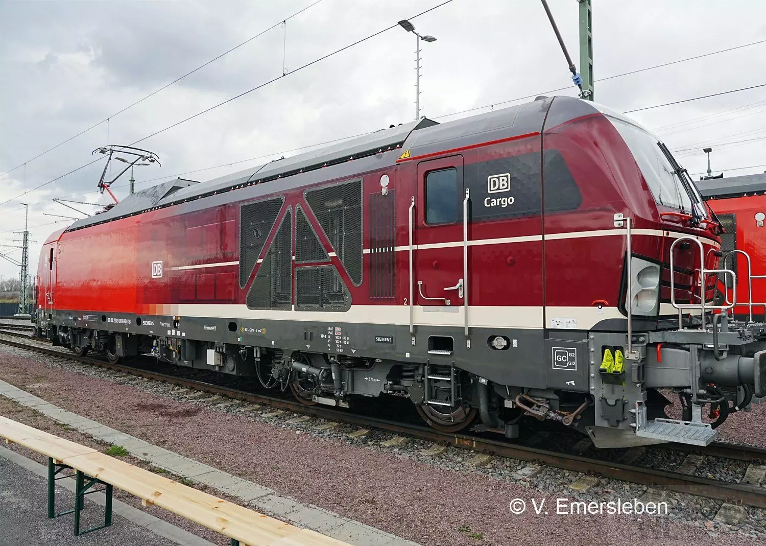 Vorbild: Zweikraftlokomotive BR 249 (Vectron Dual Mode light) mit Sonderbeklebung im geteilten Ludmilla-/V90-Design der DB Cargo AG. Aus der Vectron-Produktfamilie von Siemens. Betriebsnummer 249 001. Betriebszustand 2024.