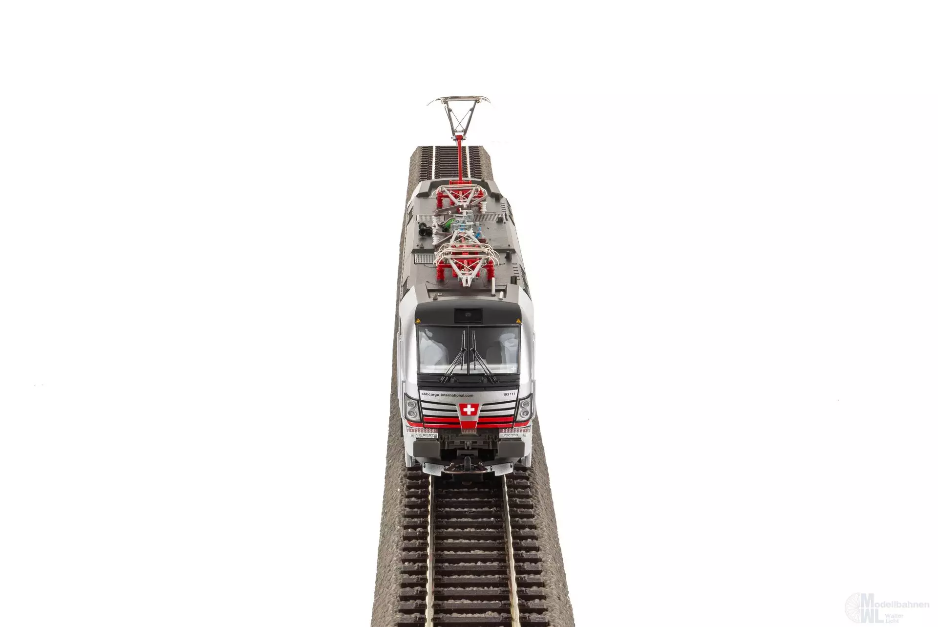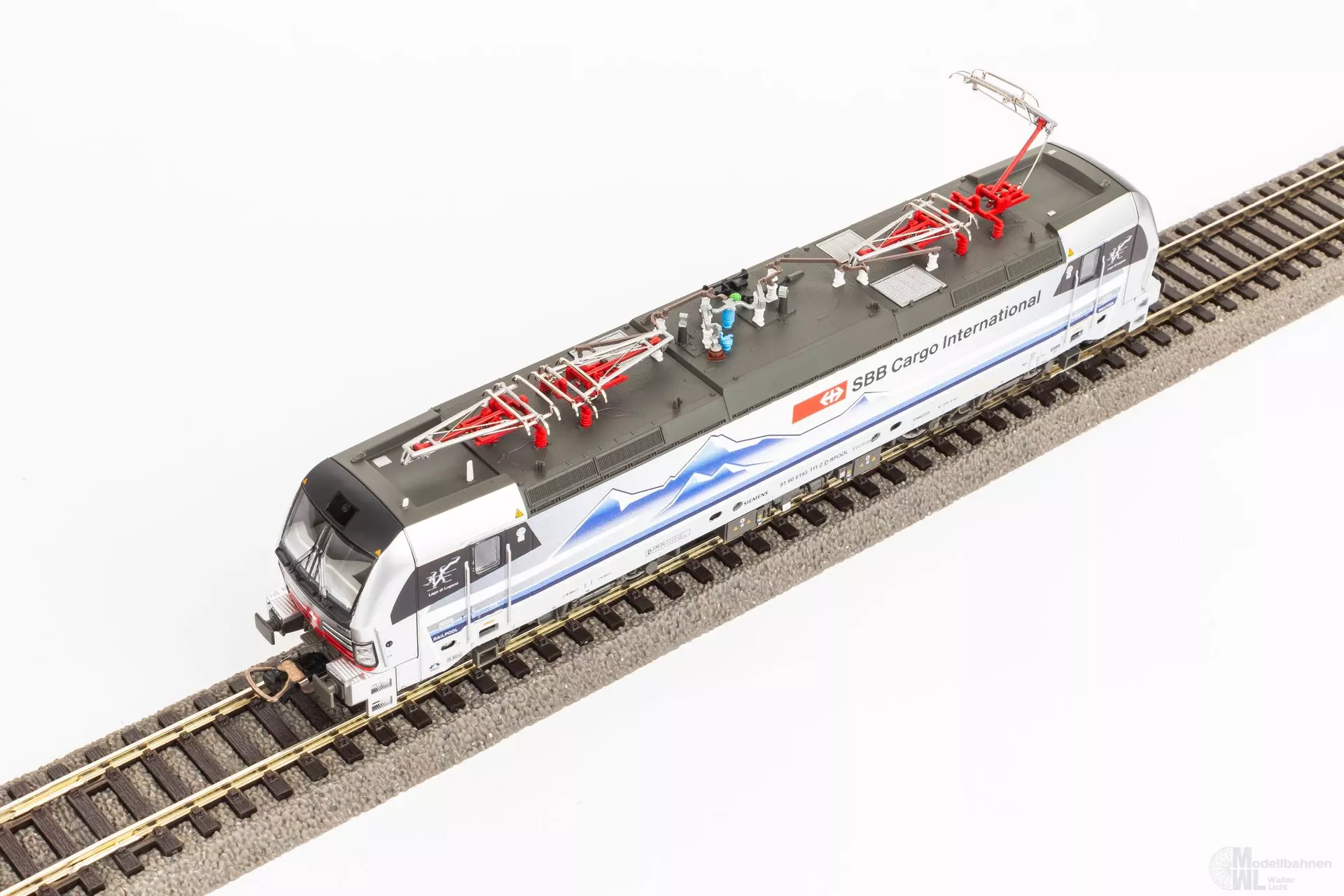 Neuheit 2024: Die BR 193 Vectron im Design Lago di Lugano der SBB in Epoche VI. Mit dem Vectron liefert PIKO ein hochpräzise gefertigtes Modell, das auf der Basis eines soliden Zinkdruckgussrahmens und der Ausstattung mit bewährten PIKO Standards über zahlreiche Extras verfügt. Der erprobte PIKO Motor sorgt mit zwei großen Schwungmassen für ausgezeichnete Laufeigenschaften. Die Zugkraft der über alle vier Achsen angetriebenen Lok wird über zwei Haftreifen verstärkt, die auf den innen laufenden Achsen beider Drehgestelle in diagonaler Anordnung zueinander sitzen. Die Beleuchtung der Stirn bzw. Schlusslampen erfolgt über LEDs, deren Rot bzw. Weiß mit der Fahrtrichtung wechselt. Zum äußerlich eleganten Erscheinungsbild dieses Modells gehören eine exakt nachgebildete technische „Dachlandschaft“ und sorgfältig detaillierte Drehgestelle mit vorbildgerechten Radscheibenprofilen. Zur Steuerung der Digital und Soundfunktionen besitzt das Modell ab Werk einen PSD XP SoundDecoder mit größtmöglichem Lautsprecher.