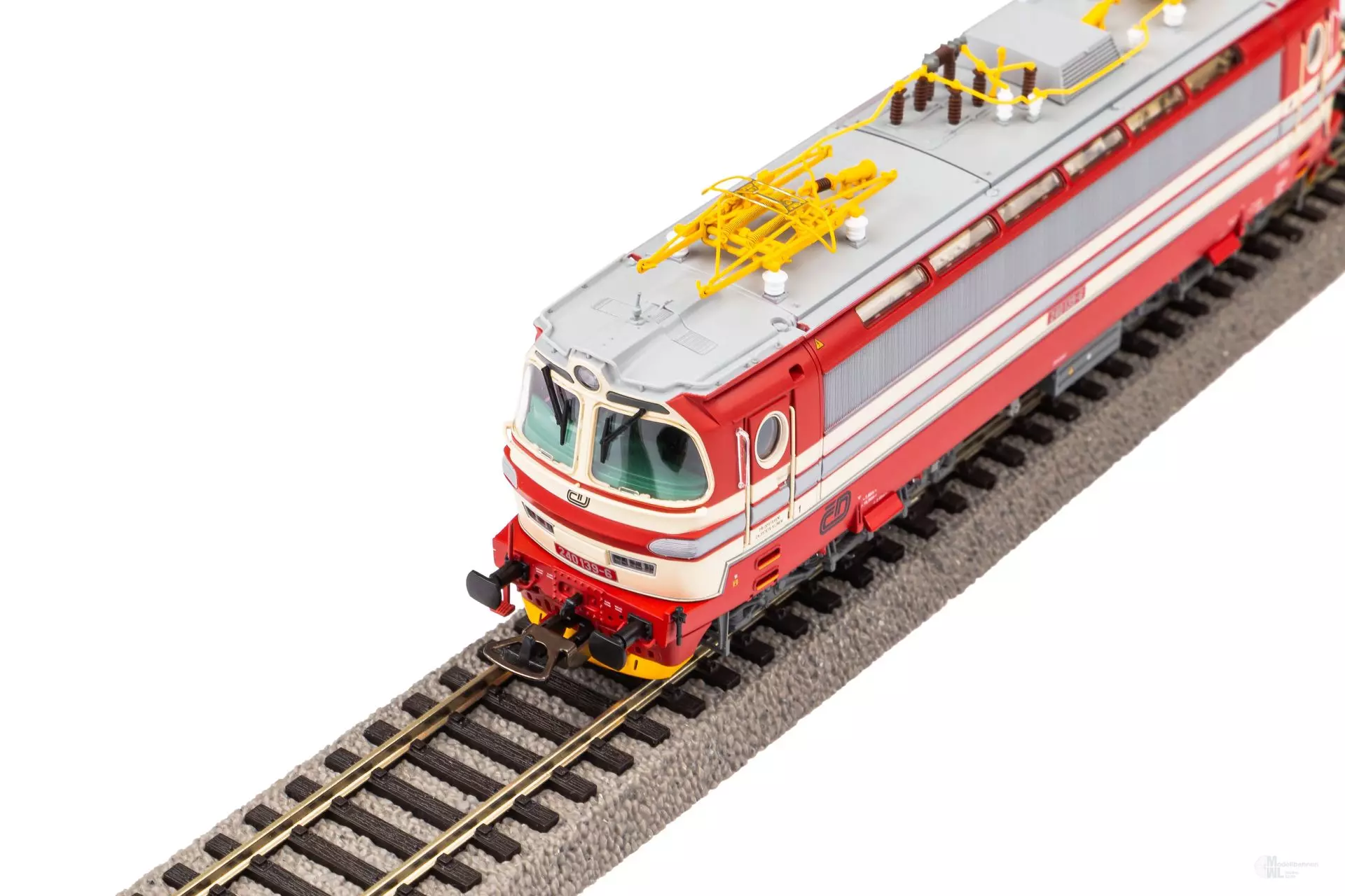 Neuheit 2023: Die formschöne „Laminátka“ in der Ausführung als BR 240 der ?D in Epoche V. Die Anmut der formschönen Maschinen vom Typ Škoda 47E „Laminátka“ wurde hervorragend in den Maßstab 1:87 übertragen und ein absolut stimmiges Gesamtbild geschaffen. Die vielen attraktiven Details, wie etwa die Oberlichter im Maschinenraum, wurden elegant umgesetzt und die stark gliedernde Linienführung des Lokkastens durch scharfe Gravuren visualisiert. Die farbenfrohe Livree des Vorbilds, samt dynamisch wirkender Zierelemente, steht der Lok auch in 1:87 dank aufwendiger Lackierung und Bedruckung ausgezeichnet. Angetrieben wird die Lok durch einen fünfpoligen Motor, dessen Stromsystem: Gleichmäßiger Lauf durch zwei Schwungmassen perfektioniert wird. Eine mit der Fahrtrichtung Stromsystem: Wechselnde Beleuchtung in Rot und Weiß ist selbstverständlich vorhanden und in zeitgemäßer LED-Technik ausgeführt. Die Elektrolok verfügt für die unkomplizierte Nachrüstung eines Decoders über eine PluX22-Schnittstelle.