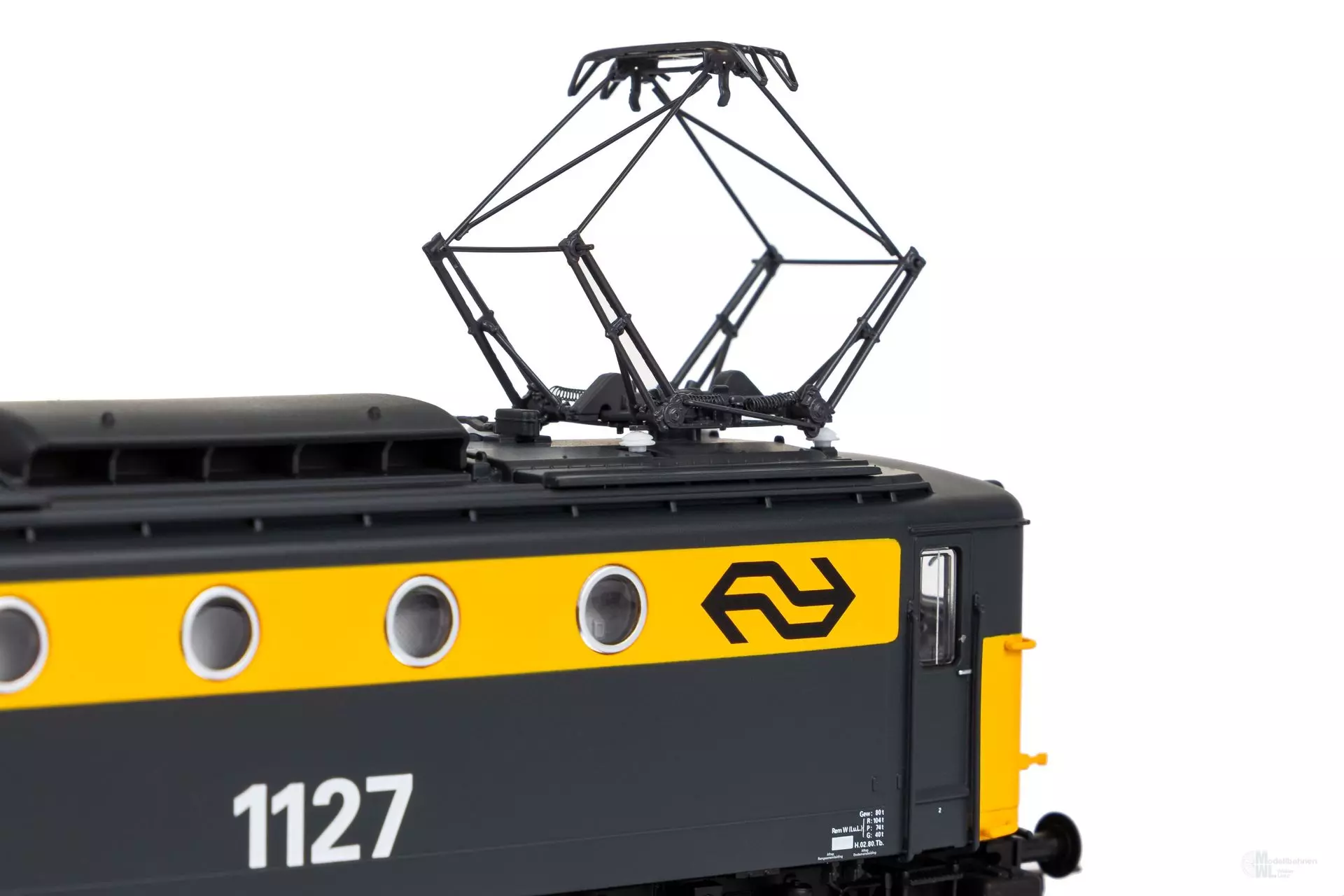 Neuheit 2023: Druckvariante der Rh 1100 der NS in Epoche IV. Das PIKO Expert Modell der Reihe 1100 der Niederländischen Staatsbahnen (NS) überzeugt mit einem gelungenen Formenbau, stimmigen Dachrundungen und vielen angesetzten Teilen, wie feine Isolatoren und Stromabnehmer, freistehende Griffstangen und Treppen. Das Modell besitzt die passenden Lampenformen, scharf gravierte Drehgestellblenden mit realistischen Federpaketnachbildungen und originalgetreue Nachbildungen der Pufferbohlen. Die Beleuchtung erfolgt mittels LEDs. Die Führerstand- und Maschinenraumbeleuchtungen sowie die fahrtrichtungsabhängig funktionierenden Front- und Schlusslichter sind mit einem PluX22-Decoder digital schaltbar. Der schwere Rahmen aus Zinkdruckguss und der Motor mit zwei großen, präzise ausgewuchteten Schwungmassen sorgen für ausgezeichnete Fahreigenschaften und hohe Zugkräfte. Das Modell verfügt über eine aufgeräumte Platine mit PluX22-Schnittstelle und ist für eine unkomplizierte Nachrüstung mit Sounddecoder und großem Lautsprecher vorbereitet.