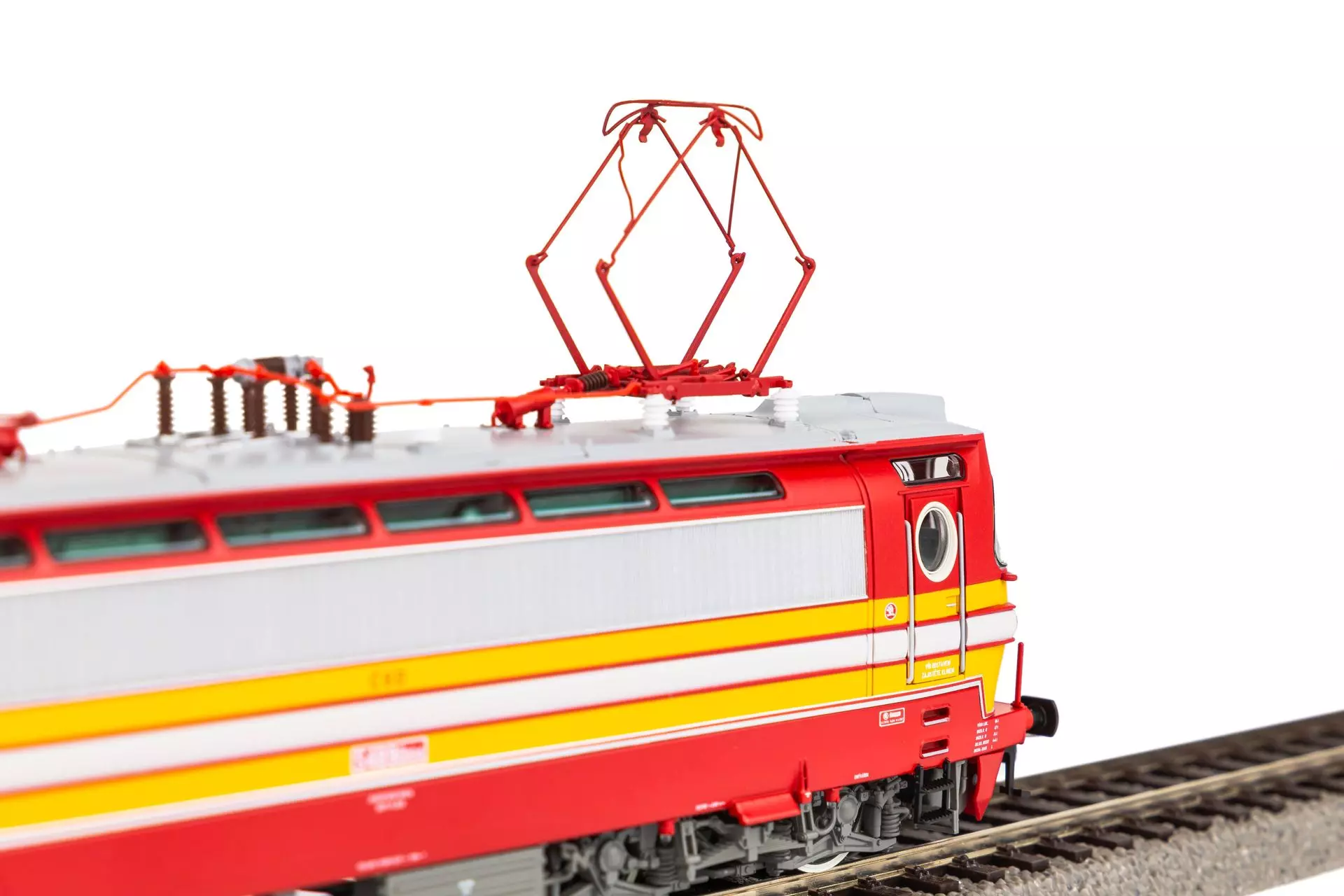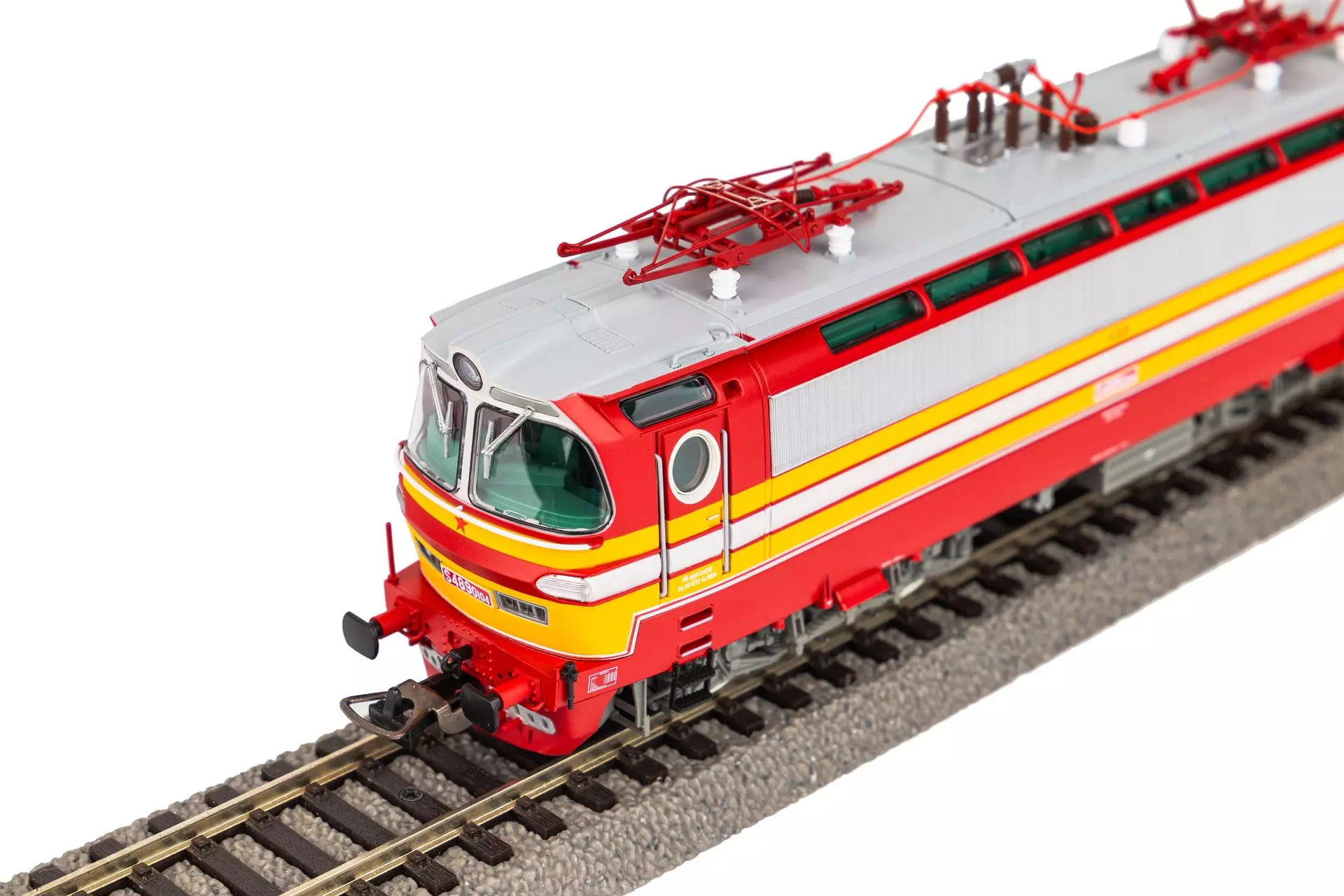 Neuheit 2024: Variante der BR S499 als S489.0 Laminátka der ?SD Cargo in Epoche III. Die Anmut der formschönen Maschinen vom Typ Škoda 47E „Laminátka“ wurde hervorragend in den Maßstab 1:87 übertragen und ein absolut stimmiges Gesamtbild geschaffen. Die vielen attraktiven Details, wie etwa die Oberlichter im Maschinenraum, wurden elegant umgesetzt und die stark gliedernde Linienführung des Lokkastens durch scharfe Gravuren visualisiert. Präzise nachgebildet wurden technische Elemente, wie der Drehgestelle, welche die gelungene Formgebung des Modells komplettieren. Die farbenfrohe Livree des Vorbilds, samt dynamisch wirkender Zierelemente, steht der Lok auch in 1:87 dank aufwendiger Lackierung und Bedruckung ausgezeichnet. Angetrieben wird die Lok durch einen fünfpoligen Motor, dessen gleichmäßiger Lauf durch zwei Schwungmassen perfektioniert wird. Eine mit der Fahrtrichtung wechselnde Beleuchtung in Rot und Weiß ist selbstverständlich vorhanden und in zeitgemäßer LEDTechnik ausgeführt. Zur einfachen Nachrüstung eines Digitaldecoders besitzt die Lok eine PluX22Schnittstelle. Dank einer großzügig dimensionierten LautsprecherAufnahme lässt sich auch ein Fahrzeugsound ganz einfach einbauen.