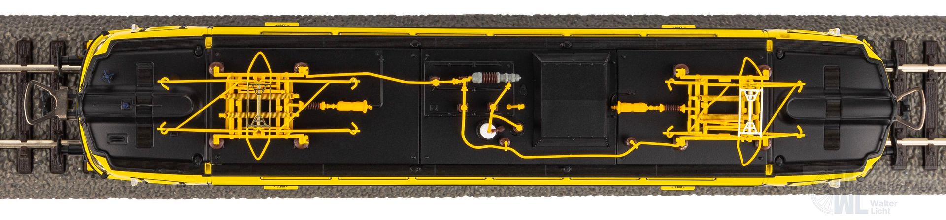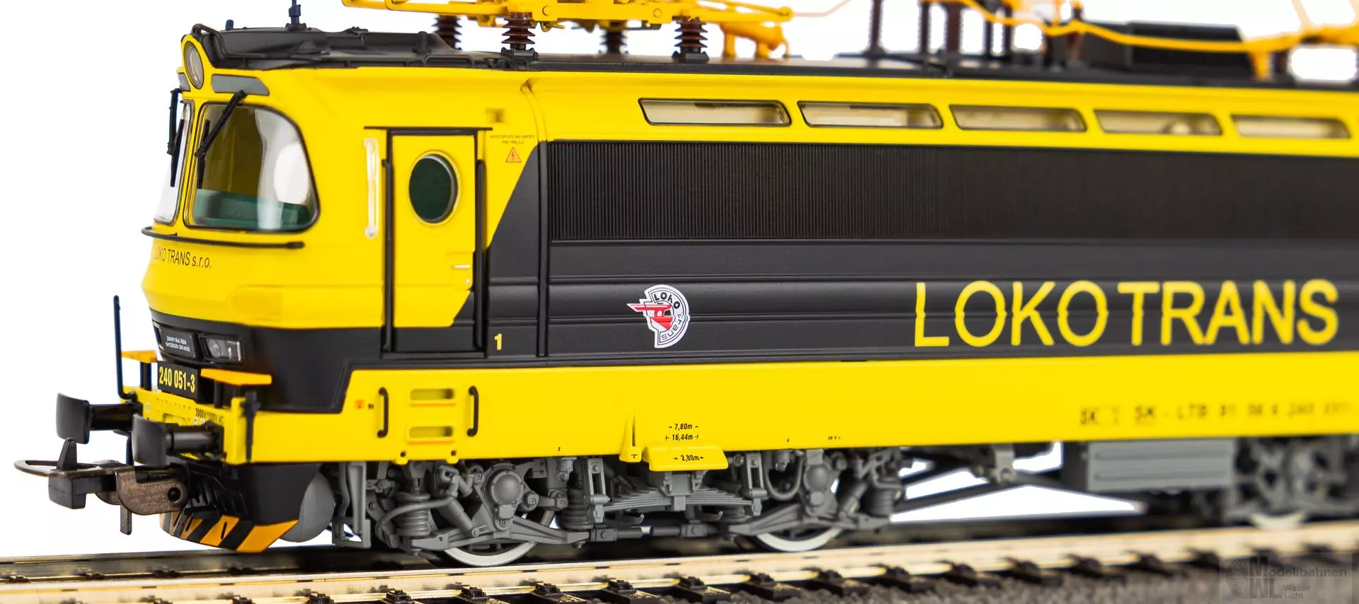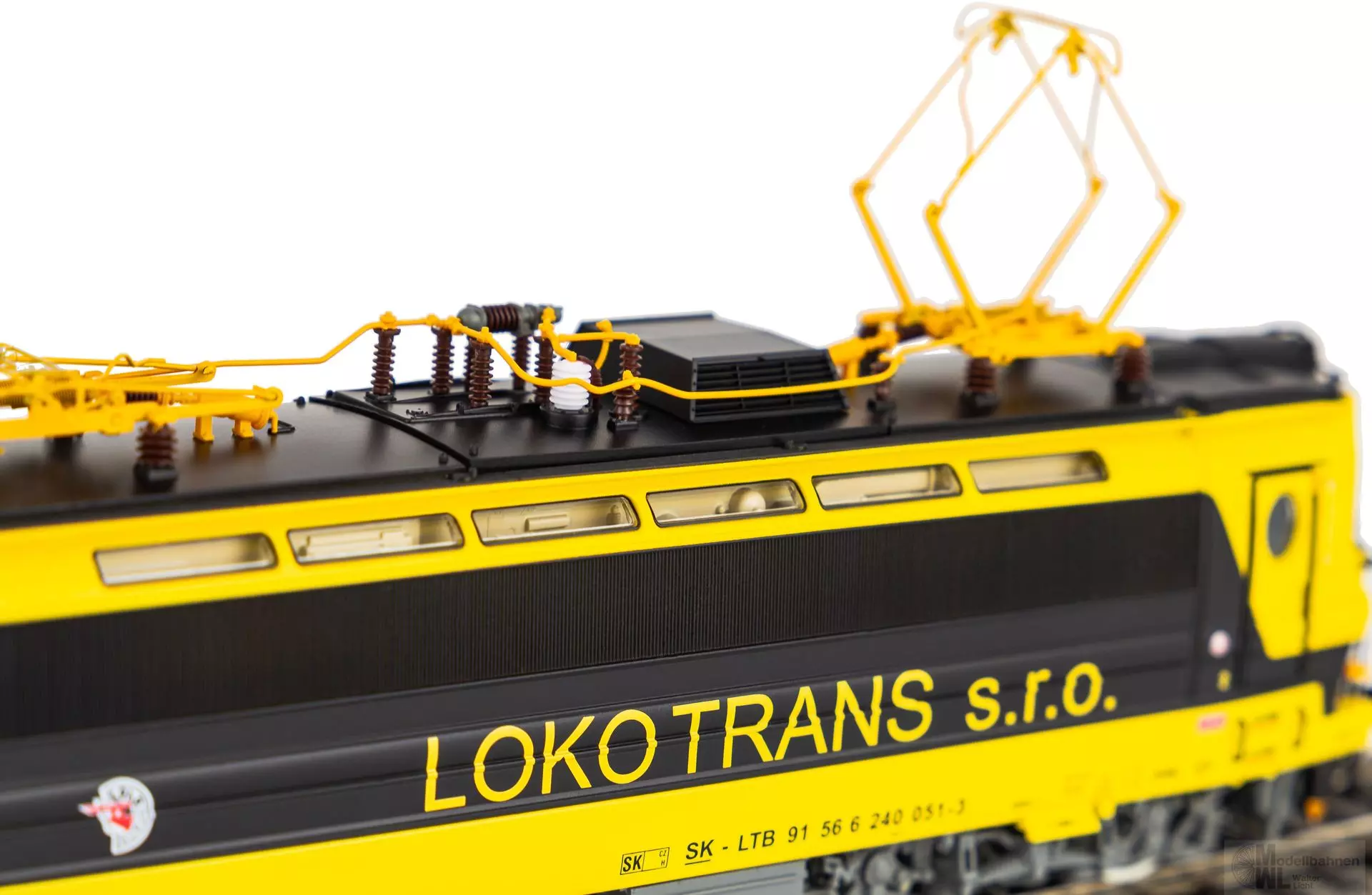 Neuheit 2024: Variante der BR S499 als Rh 240 Laminátka im schwarzgelben Design von Lokotrans in Epoche VI. Die Anmut der formschönen Maschinen vom Typ Škoda 47E „Laminátka“ wurde hervorragend in den Maßstab 1:87 übertragen und ein absolut stimmiges Gesamtbild geschaffen. Die vielen attraktiven Details, wie etwa die Oberlichter im Maschinenraum, wurden elegant umgesetzt und die stark gliedernde Linienführung des Lokkastens durch scharfe Gravuren visualisiert. Präzise nachgebildet wurden technische Elemente, wie der Drehgestelle, welche die gelungene Formgebung des Modells komplettieren. Die farbenfrohe Livree des Vorbilds, samt dynamisch wirkender Zierelemente, steht der Lok auch in 1:87 dank aufwendiger Lackierung und Bedruckung ausgezeichnet. Angetrieben wird die Lok durch einen fünfpoligen Motor, dessen gleichmäßiger Lauf durch zwei Schwungmassen perfektioniert wird. Eine mit der Fahrtrichtung wechselnde Beleuchtung in Rot und Weiß ist selbstverständlich vorhanden und in zeitgemäßer LEDTechnik ausgeführt. Das Modell verfügt ab Werk über einen passenden PSD XP SoundDecoder mit größtmöglichem Lautsprecher.