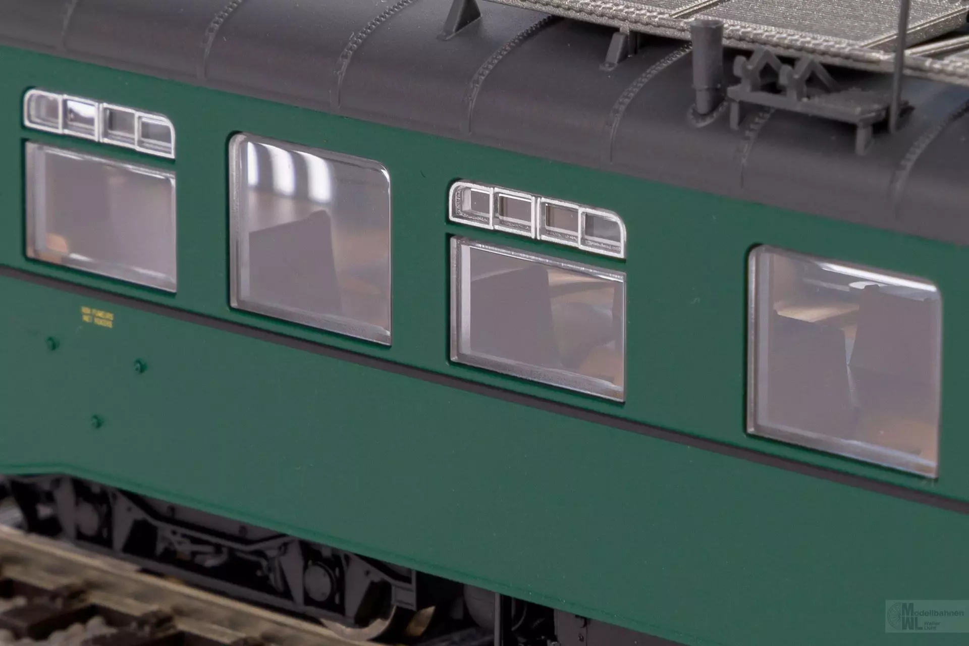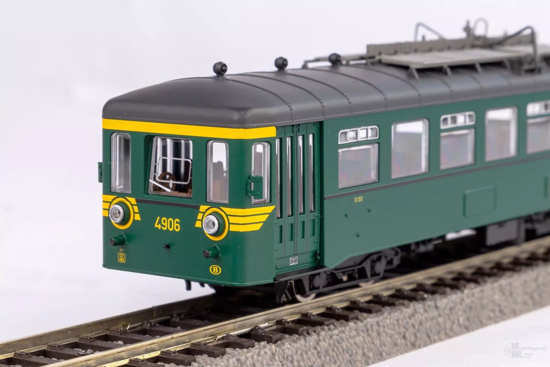 Formvariante der Rh 554 als Serie 49 der SNCB in Epoche IV. Die PIKO Modelle der Autorail Brossel hinterlassen einen äußert sympathischen Eindruck. Die kurzen Wägelchen auf vier Achsen mit ebenso kurzen Drehgestellen sind ein Blickfang auf der Modellbahn. Dabei sind gerade die sich erheblich unterscheidenden Reihen 553 und 554 eine Fleißaufgabe für die PIKO Konstrukteure gewesen – so unterschiedlich sind die Fahrzeuge im Detail. Es hat sich gelohnt: Das Modell kann in allen Belangen überzeugen. Die äußerst fein gravierten Formen verleihen Wagenkasten, Wagenboden und Drehgestellen eine hervorragende optische Anmutung, die aufwendig angesetzten Details im Dachbereich wirken wie das berühmte Tüpfelchen auf dem i. Angetrieben wird das Modell von einem zuverlässigen PIKO Motor, der so dimensioniert ist, dass ein freier Blick durch die vielen Fenster des Modells besteht. Zwei Achsen des Modells sind angetrieben, die Stromabnahme erfolgt über alle vier Achsen. Die Soundvariante verfügt ab Werk bereits über einen passenden PluX22-SoundDecoder.