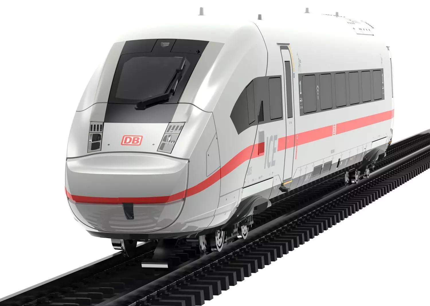 Modell: 5-teilige Ausführung im Längenmaßstab 1:95. Mit Digital-Decoder und umfangreichen Geräusch- und Lichtfunktionen. Geregelter Hochleistungsantrieb mit Schwungmasse im Bordrestaurantwagen zentral eingebaut. Alle 4 Achsen in beiden Drehgestellen über Kardan angetrieben. Haftreifen. Führerstände der Endwagen mit Inneneinrichtung. Fahrtrichtungsabhängige Stromversorgung über den jeweils vorderen Endwagen. Spezial-Kurzkupplungen mit Kulissenführung. Fahrtrichtungsabhängig wechselndes Dreilicht-Spitzensignal und zwei rote Schlusslichter, konventionell in Betrieb, digital schaltbar. Serienmäßig eingebaute Innenbeleuchtung. Innenbeleuchtung wird versorgt über die durchgehende elektrische Verbindung des ganzen Zuges. Unterschiedliche Farb-Szenarien für die Innenbeleuchtung digital schaltbar. Zusäztlich Führerstand-Beleuchtung jeweils separat digital schaltbar. Gesamte Beleuchtung mit wartungsfreien warmweißen und unterschiedlich farbigen Leuchtdioden (LED). Beide Pantographen auf dem Servicewagen als Digital-Funktion separat heb- und senkbar. Befahrbarer Mindestradius 437,5 mm. Das Befahren des Radius 1 ist ohne Beachtung des Lichtraum-Profils ebenfalls möglich.Länge des Zuges 151,5 cm.