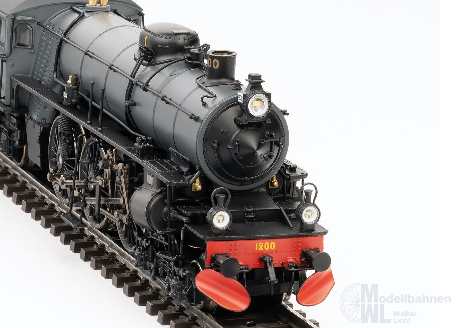 Vorbild: Dampflokomotive mit Schlepptender F 1200 der Schwedischen Staatsbahnen (SJ). Aktueller Betriebszustand, so wie die Lokomotive derzeit betriebsfähig in Gävle beheimatet ist.
