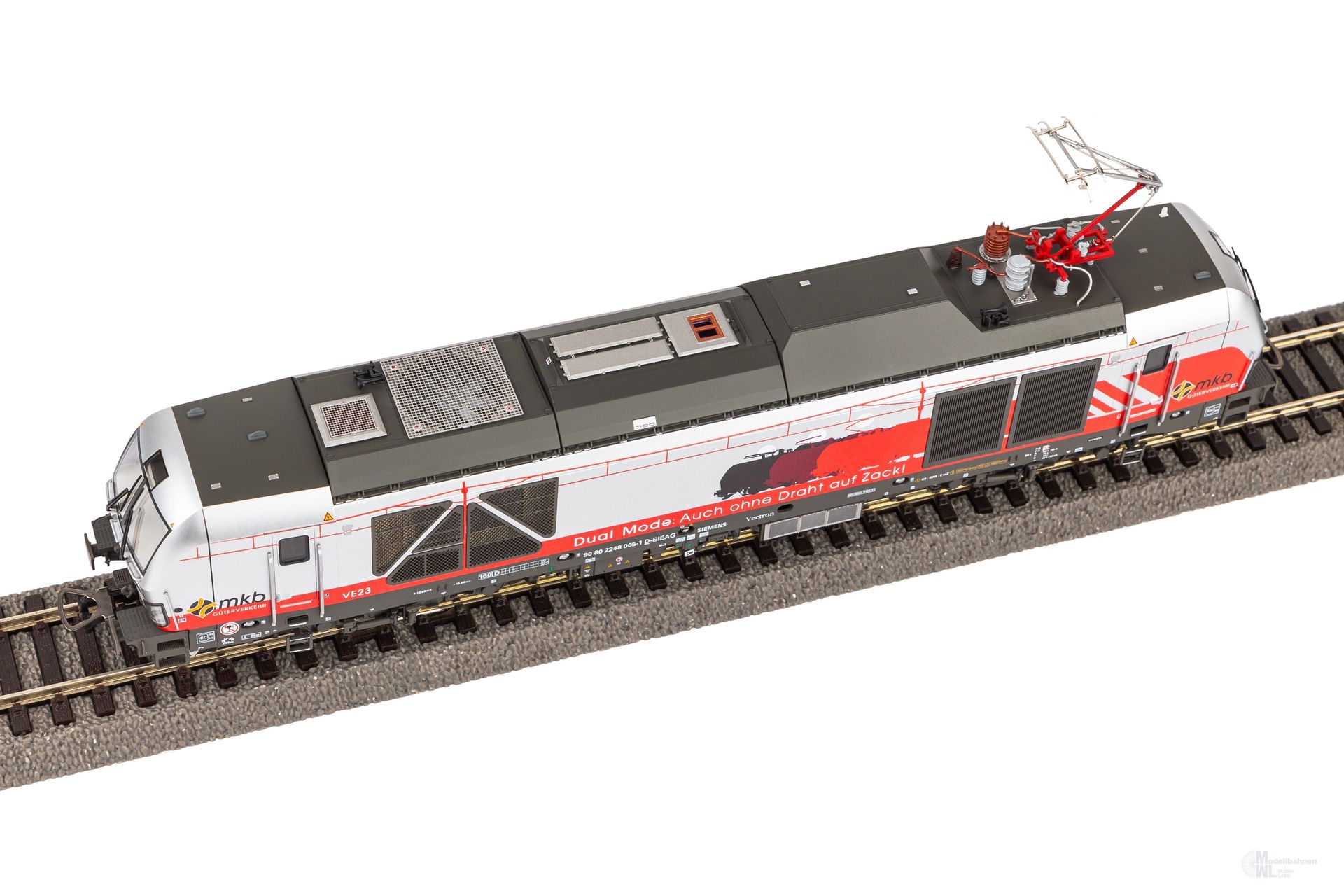 Neuheit 2024: Die großen Seitenflächen mit den markanten Lüftern und das Dach mit einem Stromabnehmer prägen das Erscheinungsbild des modernen Vectron Dual Mode. Großer Wert wurde bei Konstruktion und Werkzeugbau auch auf Details gelegt: äußerst plastisch wirkende Gravuren der Lüftungsgitter und Drehgestelle mit hervorragender optischer Tiefenwirkung unterstreichen dies. Technisch führt das Modell die bewährte Linie der PIKO Konstruktionen fort. Als Antrieb dient ein kräftiger Mittelmotor, zwei Schwungmassen sorgen für hervorragende Laufeigenschaften und diagonal angeordnete Haftreifen ermöglichen die Beförderung langer Züge. Im Digitalbetrieb können Führerstands und Führerpultbeleuchtung digital geschaltet werden. Hierfür verfügt das Modell ab Werk über einen PSD XP SoundDecoder, der zudem in Kombination mit dem großen Lautsprecher für besondere Sounderlebnisse auf der Modellbahnanlage sorgt.