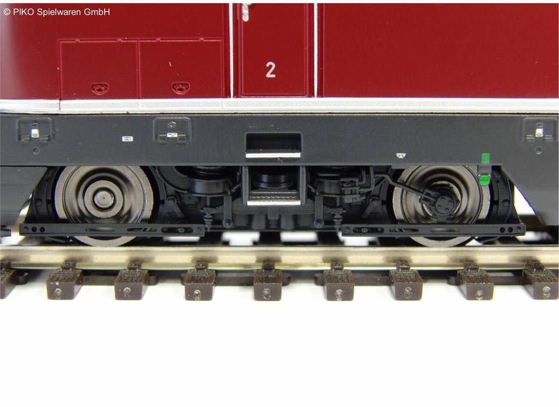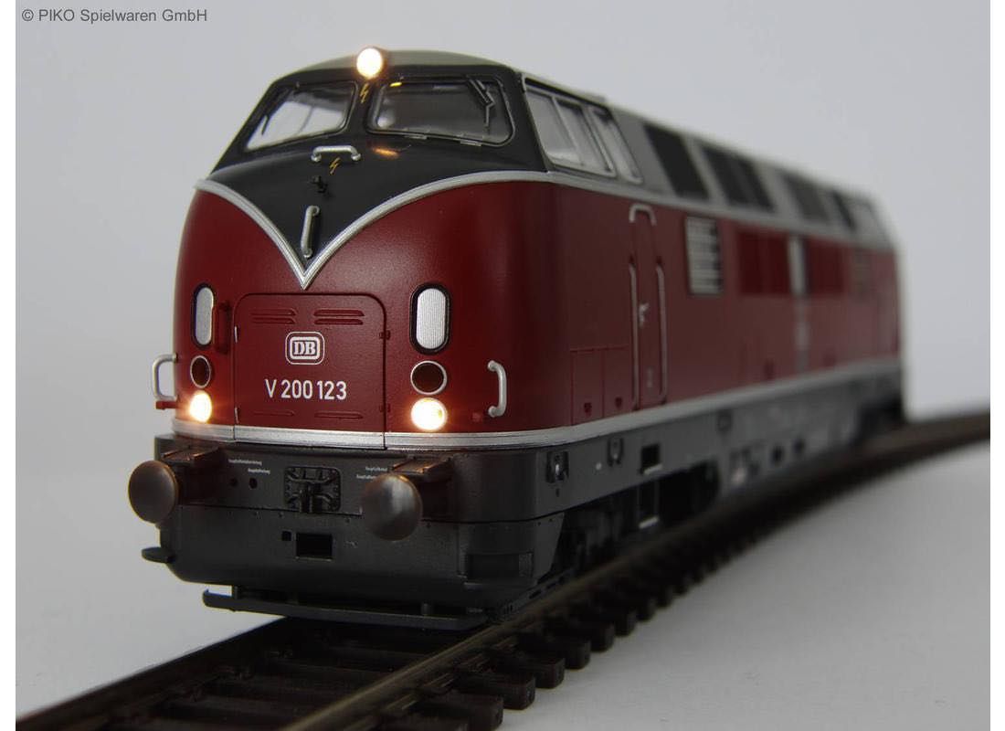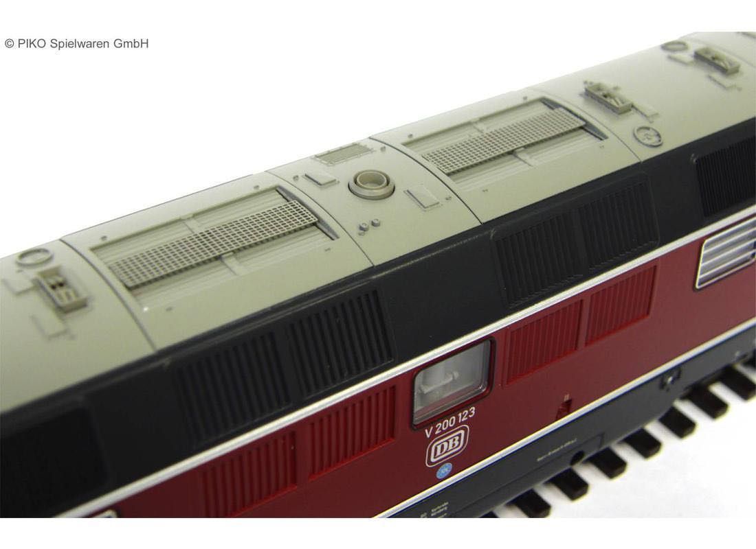 Das neukonstruierte PIKO Modell der V 200.1 weist an Dach, Gehäuse und den Drehgestellen alle optischen Änderungen zur Vorgängerbaureihe auf, in seinem konstruktiven Grundaufbau entspricht das neue Modell den PIKO Modellen der V 200.0. Mit den freistehenden, einzeln angesetzten Fronthandstangen und fein gravierten Drehgestellen gibt das Modell das Vorbild exakt wieder. Der schwere, aus Zinkdruckguss gefertigte Rahmen verleiht den Modellen im Zusammenspiel mit dem gewählten Motor mit zwei großen Schwungmassen hervorragende Laufeigenschaften. Die PIKO V 200.1 verfügt über einen fahrtrichtungsabhängigen Lichtwechsel weiß/rot sowie beidseitige Kurzkupplungskinematiken. Das Modell besitzt eine Digitalschnittstelle PluX22. Eine leichte Nachrüstung mit Sound ist vorbereitet.