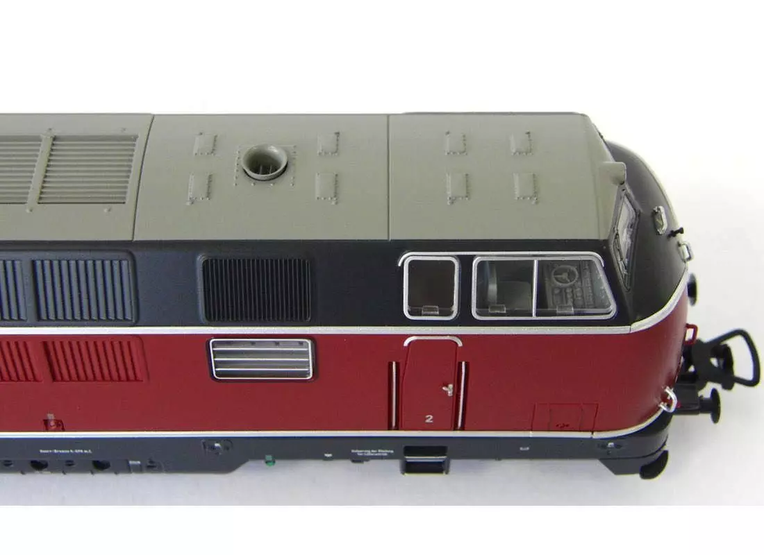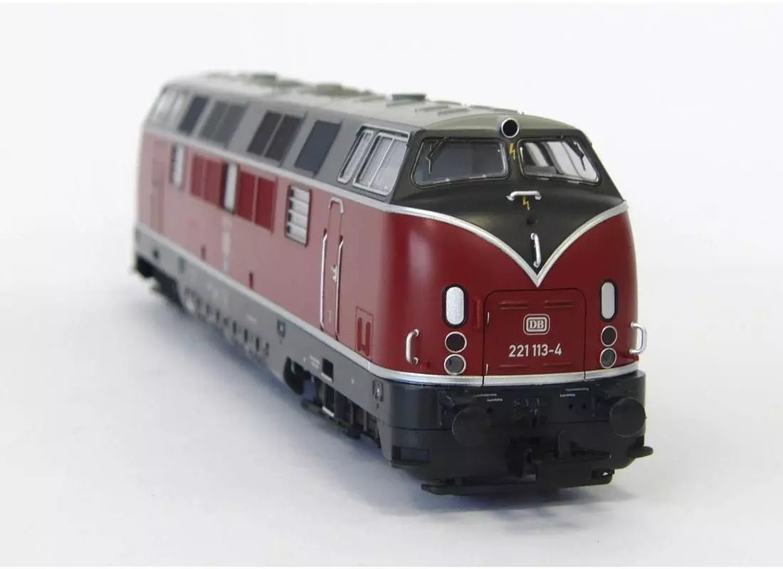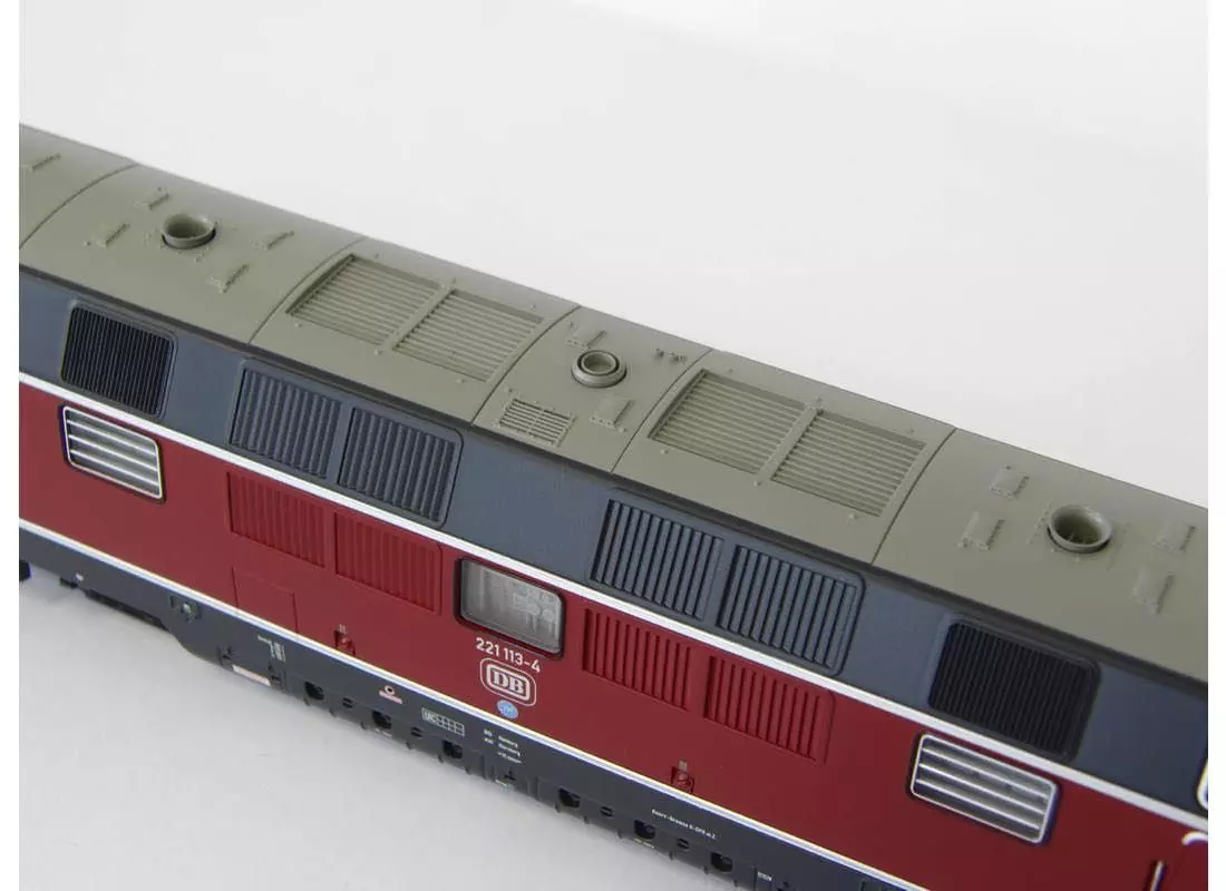 Formvariante der BR 221 mit Zierleisten und rundem Schlot in Ausführung der DB in der Epoche IV. Technisch-konstruktiv entspricht das Modell der PIKO V200.1