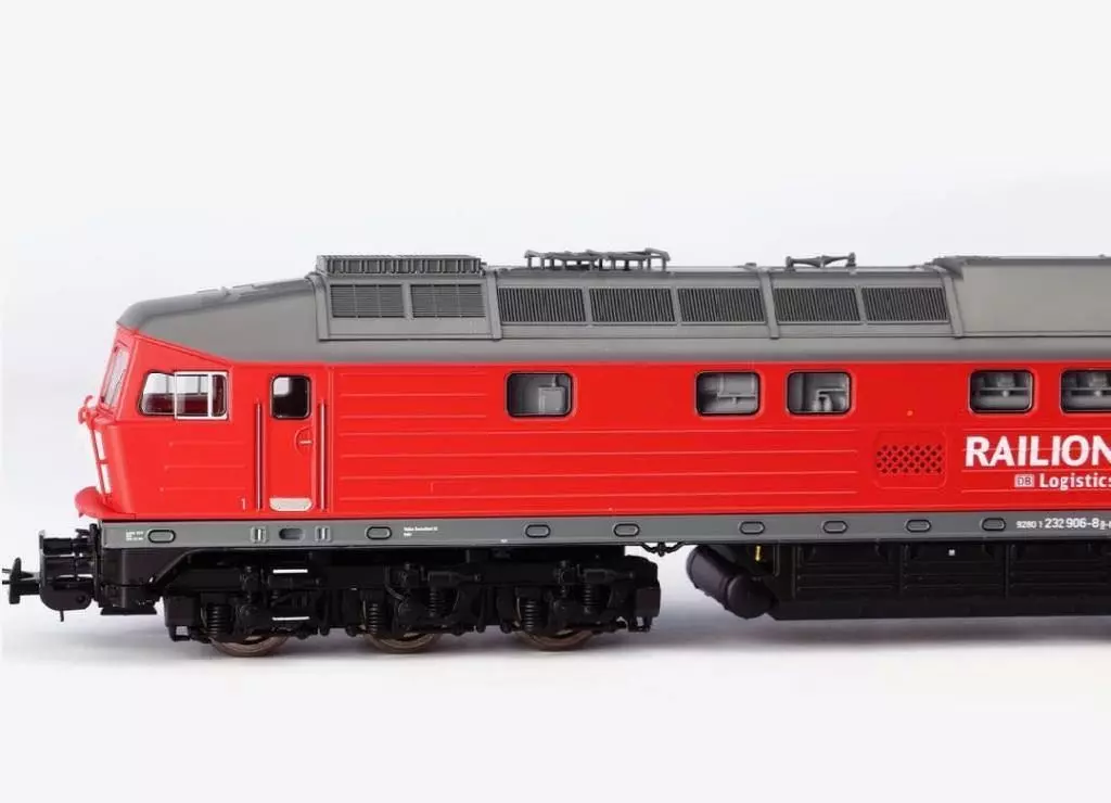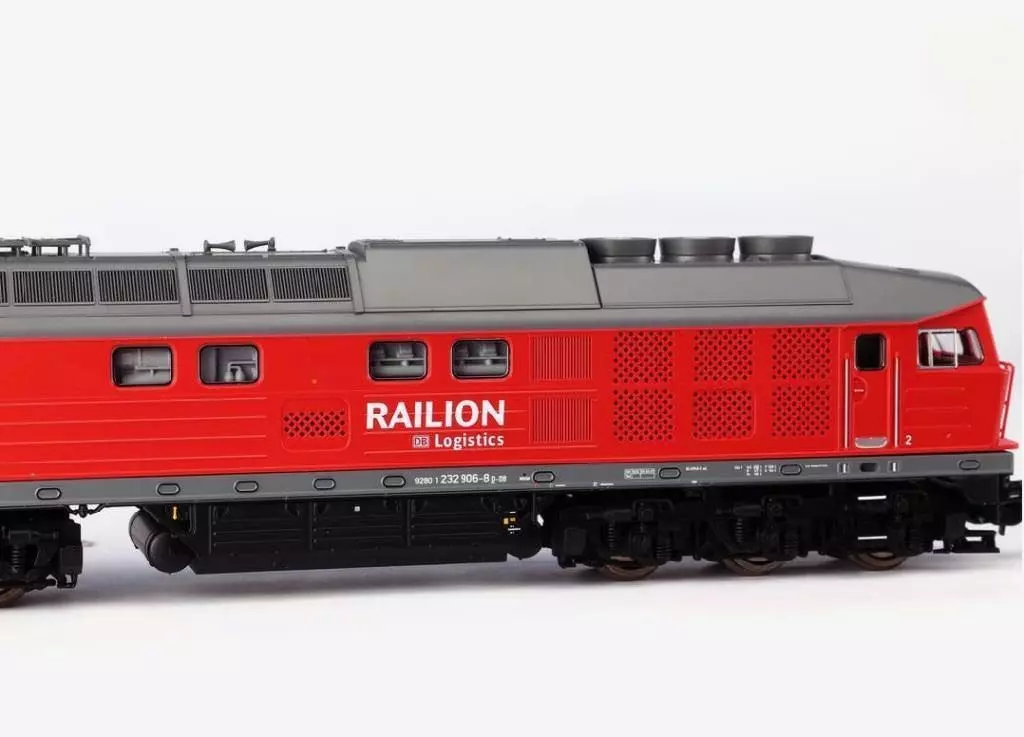 Das PIKO Modell der BR 232 für den NL Einsatz weist alle typischen Merkmale Ihrer Vorbildmaschine auf. Die Griffstangen sind freistehend ausgeführt. Das Modell zeichnet sich u.a. durch feinste Lackierung und Bedruckung, freistehende Griffstangen, einen Zinkdruckgussrahmen und einen kräftigen fünfpoligen Motor aus, der mit zwei ausgewuchteten Schwungmassen ausgeglichene Laufeigenschaften garantiert. Das Modell besitzt zwei Haftreifen, die in diagonaler Anordnung auf den inneren Achsen der beiden Drehgestelle sitzen. Die Beleuchtung erfolgt mittels LEDs. Die Führerstandsbeleuchtung und das Schlusslicht lassen sich separat schalten.