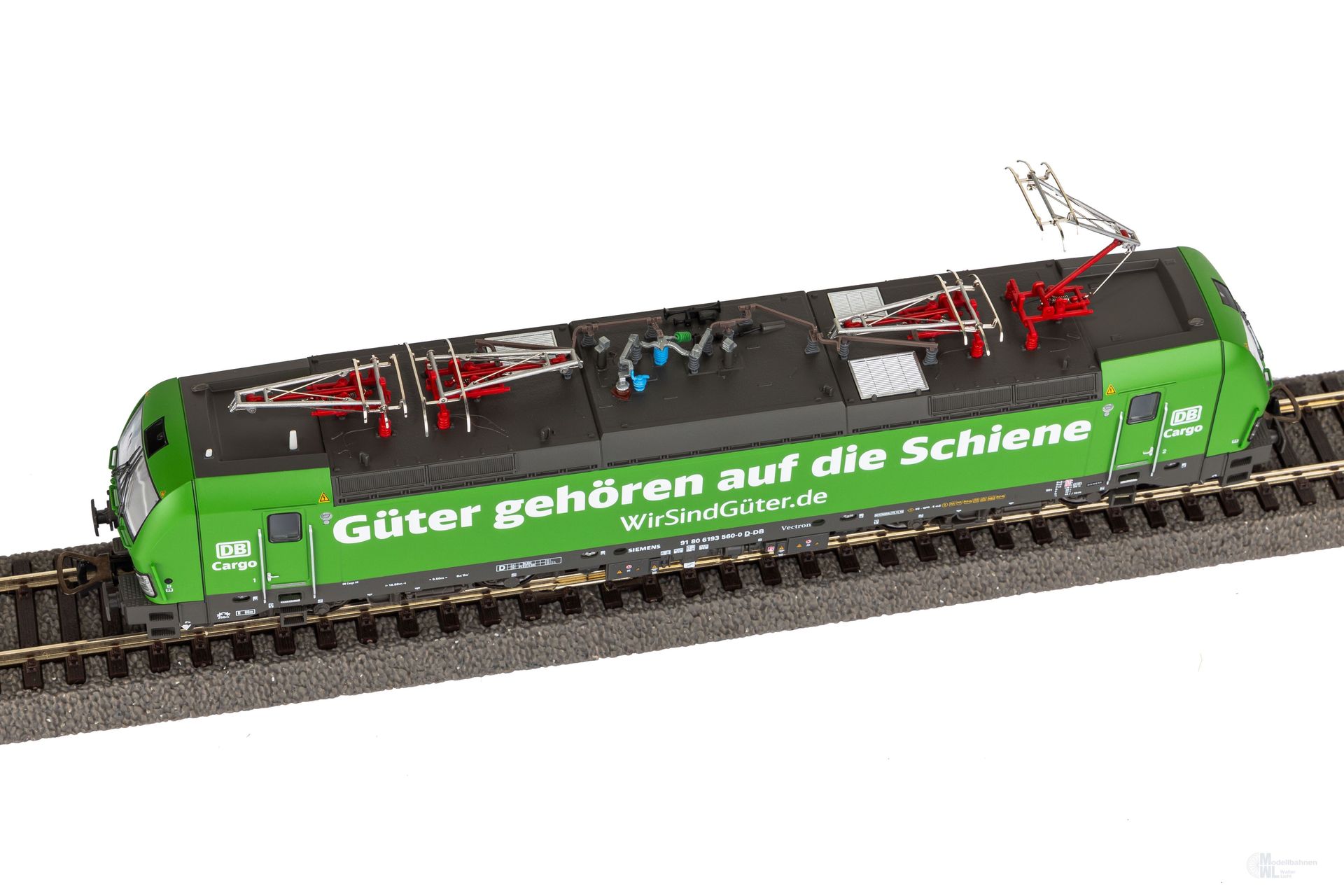Neuheit 2023: Druckvariante des Vectron im Design Güter gehören auf die Schiene der DB Cargo in Epoche VI. Das Modell verfügt über einen PSD XP Sound-Decoder.