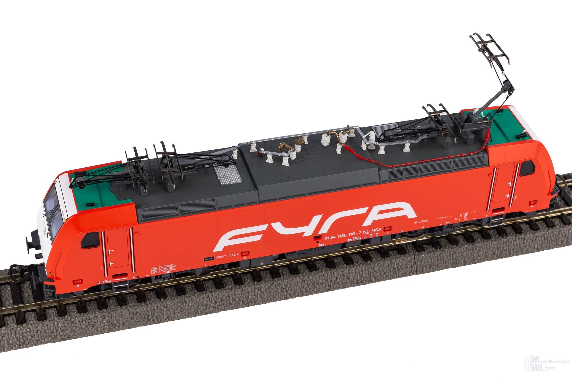Neuheit 2023: Druckvariante der BR 186 im Design FYRA in Epoche V. Das Modell verfügt über einen PSD XP Sound-Decoder.