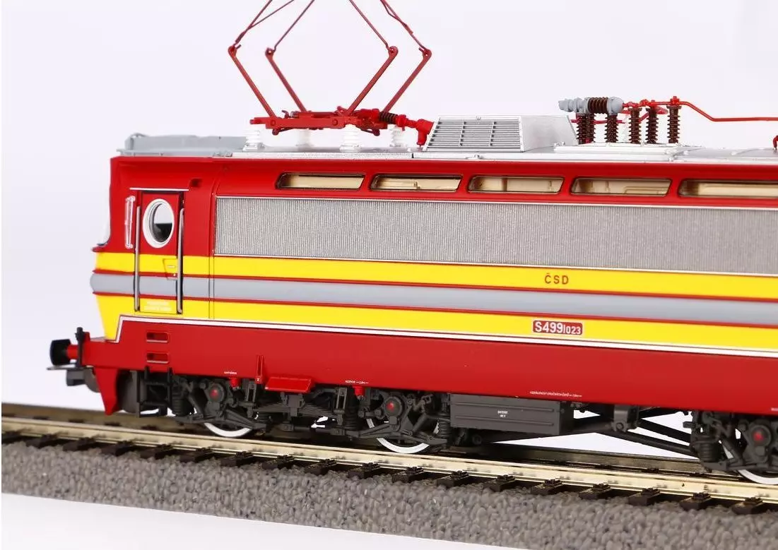 Erstmalig erscheinen die formschönen Maschinen vom Typ Škoda 47E „Laminátka“ als einsatzfähiges Großserienmodell in der Baugröße H0. Die Anmut der Maschine wurde hervorragend in den Maßstab 1:87 übertragen und ein absolut stimmiges Gesamtbild geschaffen. Die vielen attraktiven Details, wie etwa die Oberlichter im Maschinenraum, wurden elegant umgesetzt und die stark gliedernde Linienführung des Lokkastens durch scharfe Gravuren visualisiert. Präzise nachgebildet wurden technische Elemente, wie der Drehgestelle, sie komplettieren die gelungene Formgebung des Modells. Die farbenfrohe Livree des Vorbilds, samt dynamisch wirkender Zierelemente, steht der Lok auch in 1:87 dank aufwendiger Lackierung und Bedruckung ausgezeichnet. Angetrieben wird die Lok durch einen fünfpoligen Motor, dessen gleichmäßiger Lauf durch zwei Schwungmassen perfektioniert wird. Eine mit der Fahrtrichtung wechselnde Beleuchtung in Rot und Weiß ist selbstverständlich vorhanden und in zeitgemäßer LED-Technik ausgeführt. Zur einfachen Nachrüstung eines Digitaldecoders besitzt die Lok eine PluX22-Schnittstelle. Dank einer großzügig dimensionierten Lautsprecher-Aufnahme lässt sich auch ein Fahrzeugsound ganz einfach einbauen.