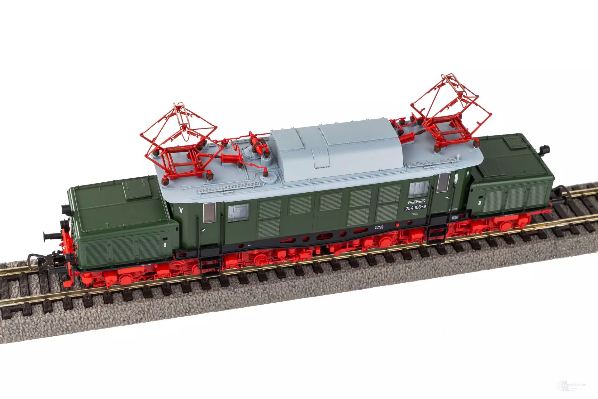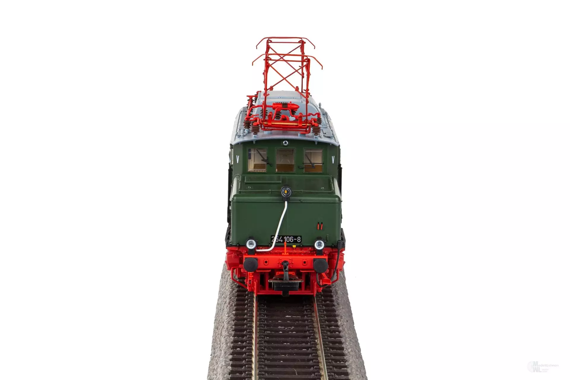 Neuheit 2023: Formvariante der BR E 94 in der Ausführung als BR 254 der DR in Epoche IV. Ab 1970 wurden die Maschinen der Baureihe E 94 bei der DR unter der Nummer 254 geführt. Im Laufe der darauffolgenden Jahre wurden einige Veränderungen an den Lokomotiven vorgenommen. So erhielten Sie neue Stromabnehmer vom Typ RBS 58 und die Drehgestelle wurden rot gestrichen. Diese und weitere Besonderheiten spiegelt auch das PIKO Modell vorbildgetreu wieder.