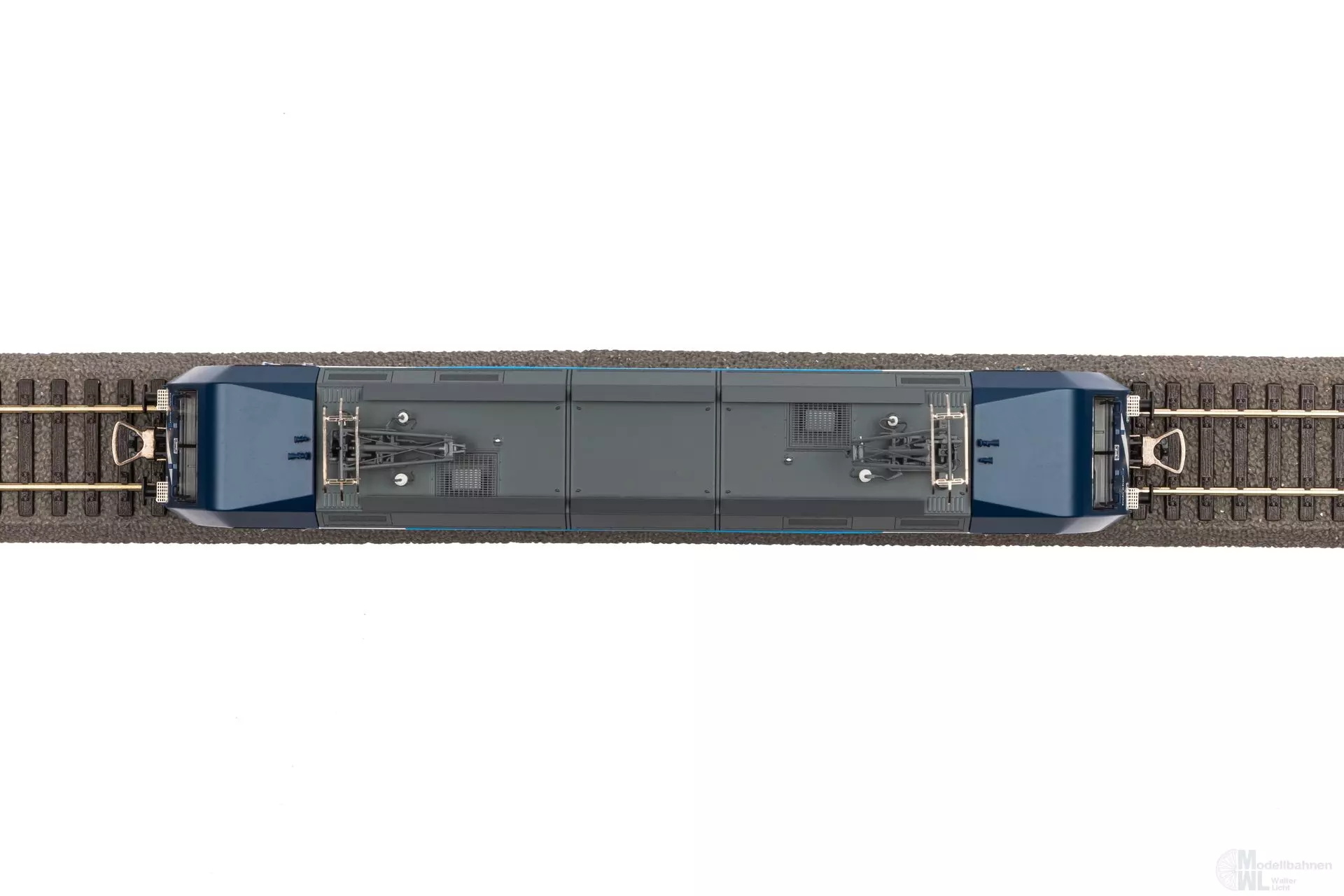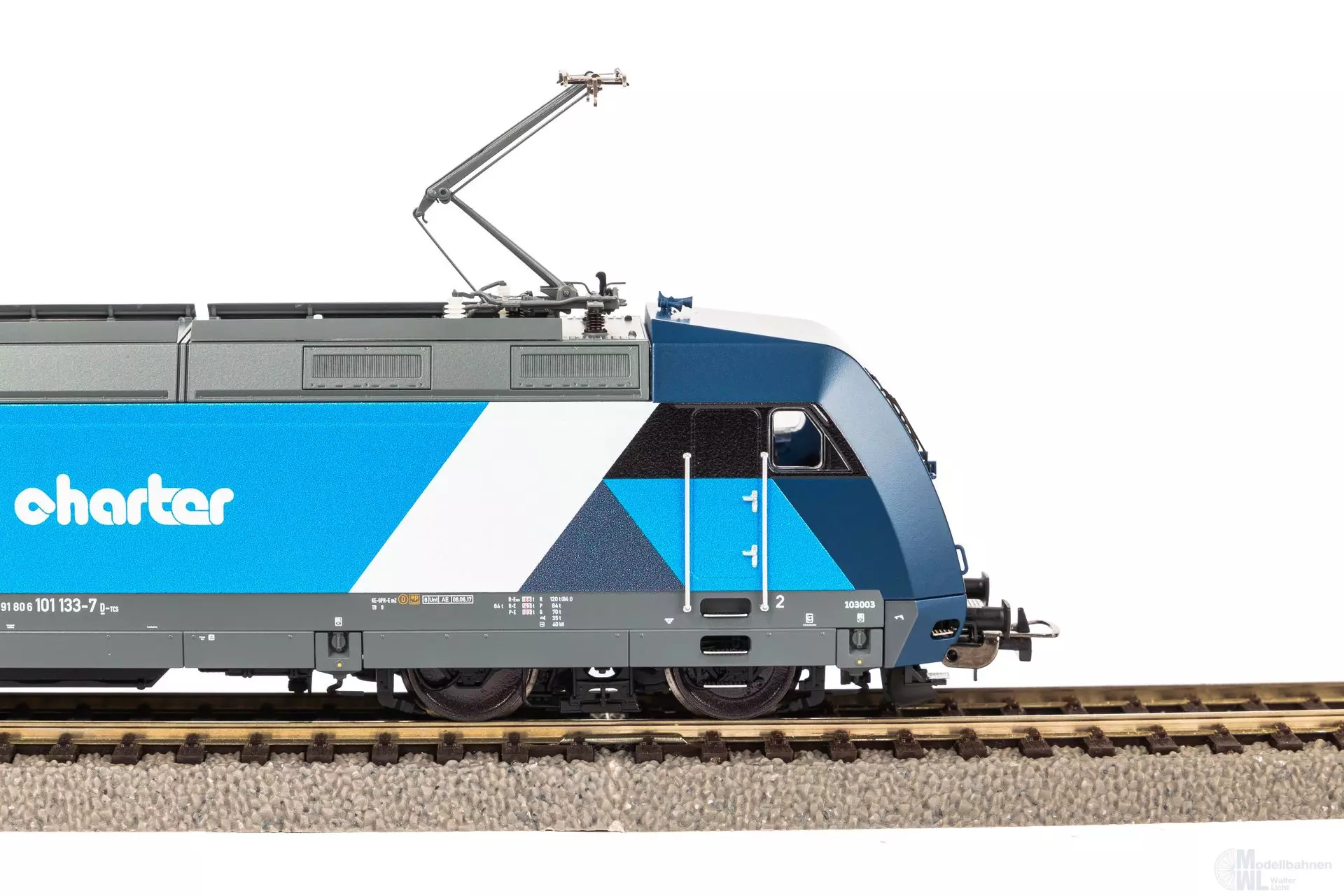 Neuheit 2024: Die moderne BR 101 im Design des Unternehmens Train Charter Services. Die EinholmStromabnehmer sind äußerst filigran nachgebildet worden und scharf gravierte Drehgestelle runden den optischen Auftritt ab. Zur Komplementierung liegen zurüstbare Bremsschläuche bei.