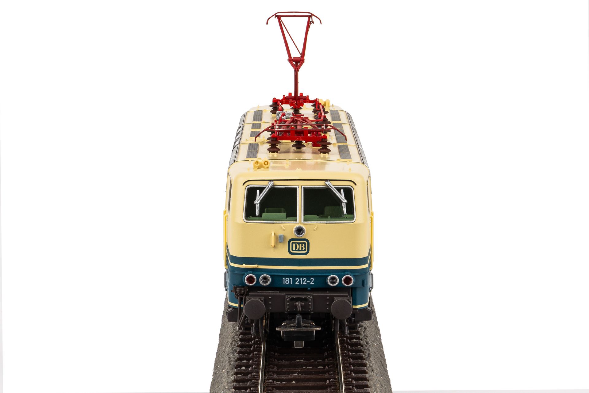 Neuheit 2024: Variante der BR 181.2 der DB mit Bedruckung Luxembourg in Epoche IV. Das PIKO Modell der wichtigen MehrsystemLokbaureihe 181.2 zeigt alle relevanten Details seines Vorbildes auf und überzeugt durch feinste Lackierung und Bedruckung, erhabene Namensschilder auf den Seiten, extra angesetzte Frontgriffe und Türgriffstangen, scharf gravierte Drehgestellblenden, feine Isolatoren und Stromabnehmer mit unterschiedlichen Schleifstücken. Die Beleuchtung erfolgt mittels LEDs. Die serienmäßig eingebaute Führerstands und Maschinenraumbeleuchtungen sind hierbei wie die fahrtrichtungsabhängig funktionierenden Schlusslichter mit PluX22 Decoder digital schaltbar. Ein starker fünfpoliger Motor mit Schwungmassen, der alle vier Achsen antreibt, sorgt für hervorragende Fahreigenschaften. Das schwere PIKO Modell verfügt über zwei Haftreifen und einen schweren Zinkdruckgussrahmen für große Zugkräfte. Die PIKO 181.2 besitzt ab Werk einen passenden PSD XP SoundDecoder mit größtmöglichem Lautsprecher.
