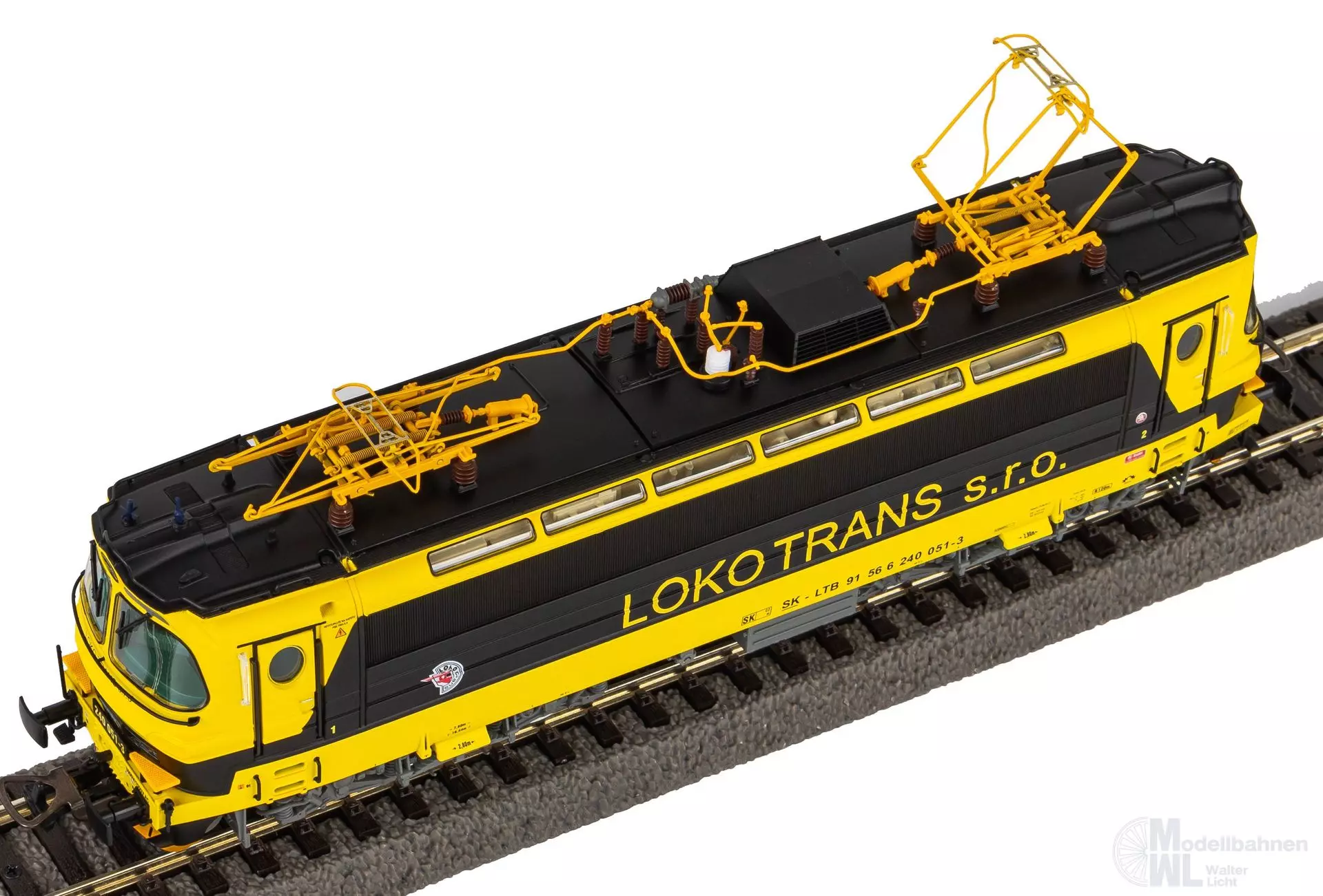 Neuheit 2024: Variante der BR S499 als Rh 240 Laminátka im schwarzgelben Design von Lokotrans in Epoche VI. Die Anmut der formschönen Maschinen vom Typ Škoda 47E „Laminátka“ wurde hervorragend in den Maßstab 1:87 übertragen und ein absolut stimmiges Gesamtbild geschaffen. Die vielen attraktiven Details, wie etwa die Oberlichter im Maschinenraum, wurden elegant umgesetzt und die stark gliedernde Linienführung des Lokkastens durch scharfe Gravuren visualisiert. Präzise nachgebildet wurden technische Elemente, wie der Drehgestelle, welche die gelungene Formgebung des Modells komplettieren. Die farbenfrohe Livree des Vorbilds, samt dynamisch wirkender Zierelemente, steht der Lok auch in 1:87 dank aufwendiger Lackierung und Bedruckung ausgezeichnet. Angetrieben wird die Lok durch einen fünfpoligen Motor, dessen gleichmäßiger Lauf durch zwei Schwungmassen perfektioniert wird. Eine mit der Fahrtrichtung wechselnde Beleuchtung in Rot und Weiß ist selbstverständlich vorhanden und in zeitgemäßer LEDTechnik ausgeführt. Das Modell verfügt ab Werk über einen passenden PSD XP SoundDecoder mit größtmöglichem Lautsprecher.
