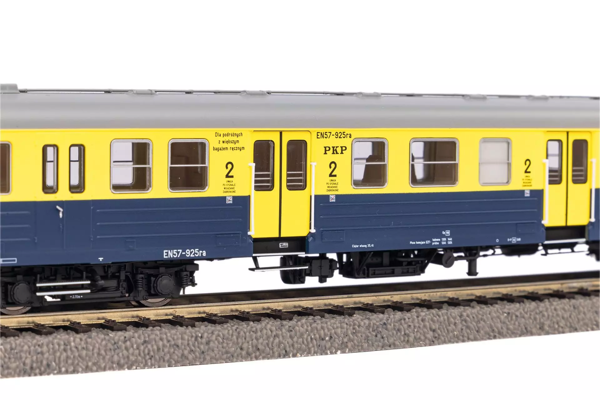 Mit dem EN57 kommt PIKO einem weiteren Wusch der polnischen Modellbahnfreunde nach. Die markanten Merkmale des Originals wurden exakt nachgebildet. Hierzu zählen die Dachausrüstung, filigrane Stromabnehmer, die realistisch wiedergegebenen Lampen, sowie die nachgebildete Inneinrichtung. Lackierung und Bedruckung sind der Epoche entsprechend nachempfunden. Die Kurzkupplungen erlauben auch im Modell eine Fahrt in Doppeltraktion, die Bildung ganzer Zuggarnituren ist vorbildgerecht möglich. Ein starker Motor mit Schwungmasse verleiht dem Modell hervorragende Fahreigenschaften.