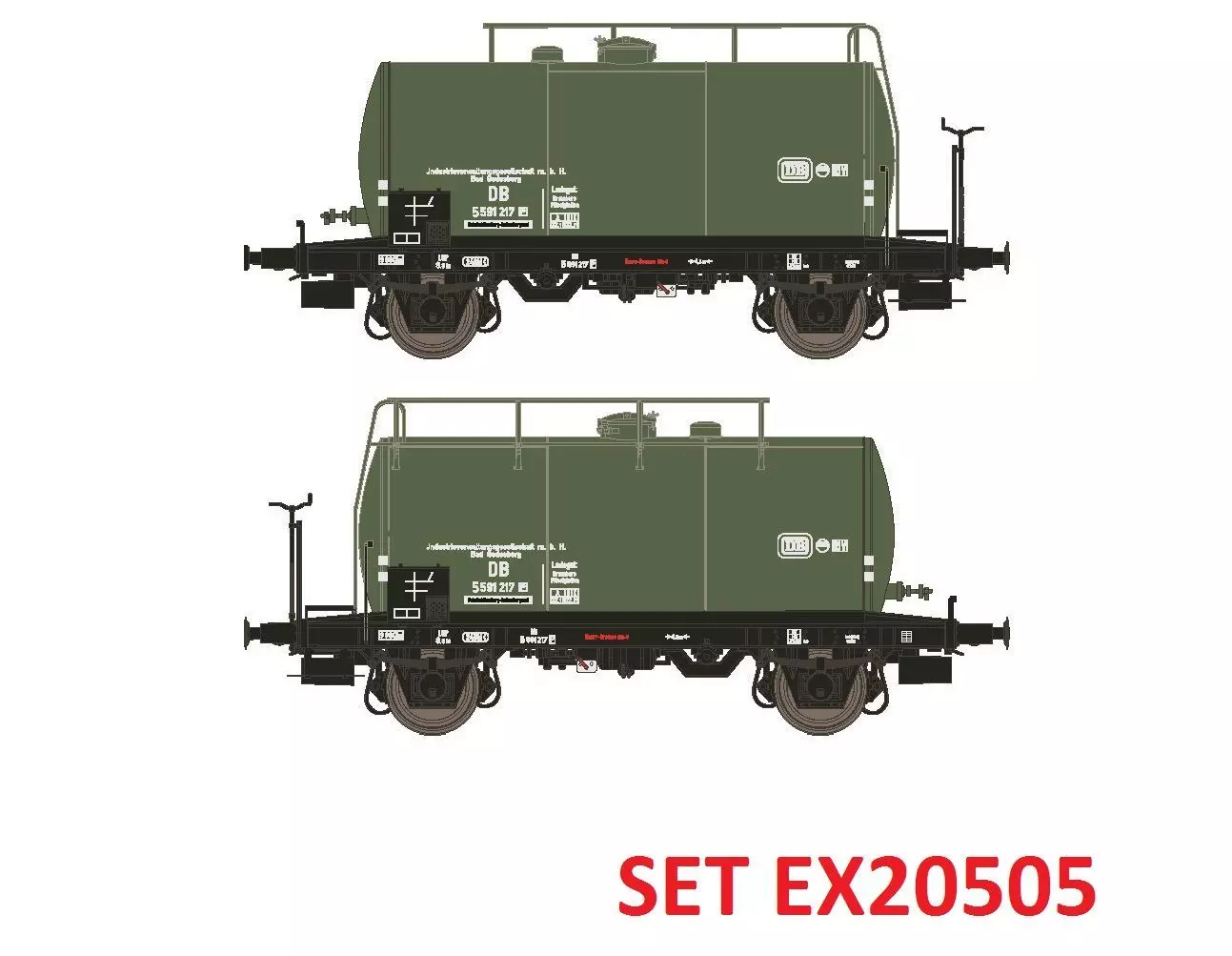 Eigenschaften "Exact Train 20505 - Kesselwagen Set DB Ep.III 24m3 Uedinger Kesselwagen IVG Grün 2.tlg. H0/GL"
