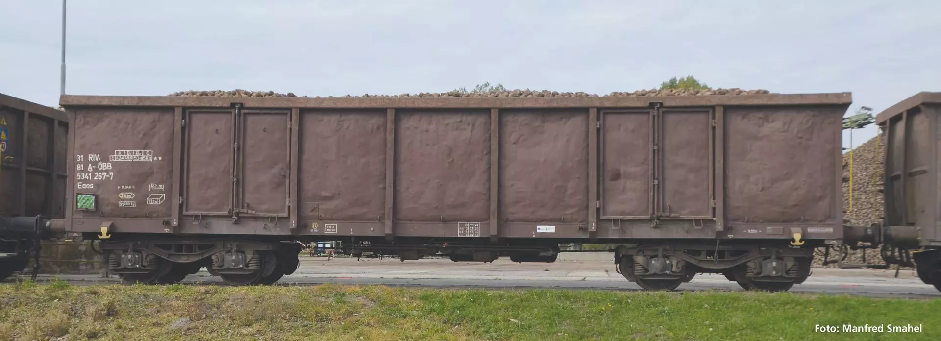 Zweierset bestehend aus zwei offenen Güterwagen vom Typ Eaos der RCW aus Epoche VI mit Sandbeladung. Wie das Vorbild ist der Eaos auch im Modell ein Fahrzeug mit hoher Verbreitung und sollte auf jeder Modellbahnanlage mehrmals vorhanden sein. Da lag es nahe, diesen wichtigen Wagentyp mit einer zeitgemäßen Neukonstruktion zu bedenken. Entstanden ist eine Miniatur, die dank äußerst plastischer Gravuren und einer vollendeten Lackierung samt stimmiger Bedruckung absolut authentisch wirkt. Besonders ins Auge fallen die äußerst fein gearbeiteten Drehgestelle, deren Konstruktion gleichzeitig eine perfekte Gleislage gewährleistet. Für ein vorbildorientiertes Bild im Zugverband sorgt die Kulissenführung. Radsätze für das Mittelleiter-System stehen zur Verfügung.