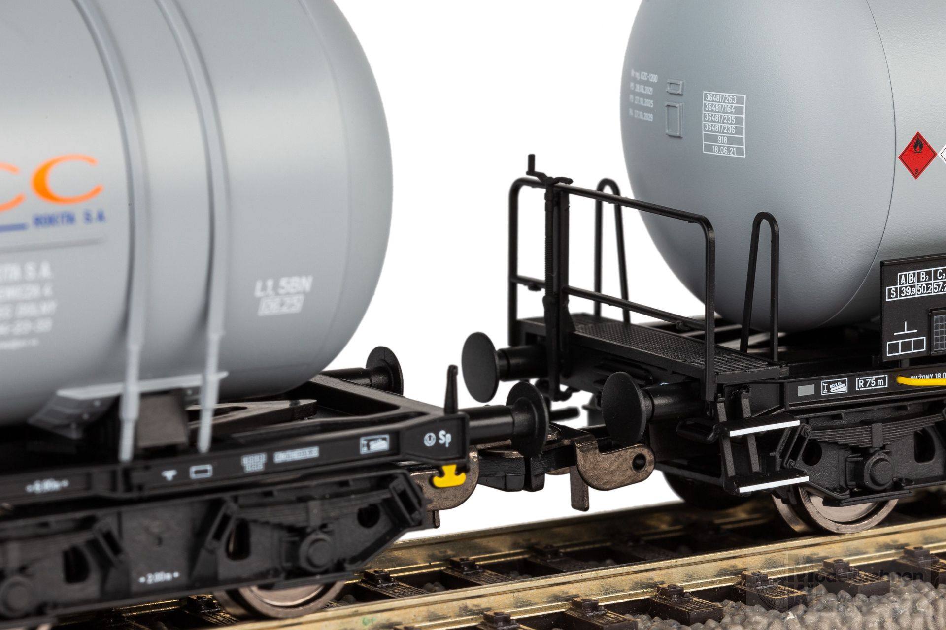 Neuheit 2024: Wagenset bestehend aus zwei Kesselwagen vom Typ 406Rb der PCC in Epoche VI. Die Wagen haben unterschiedliche Betriebsnummern.