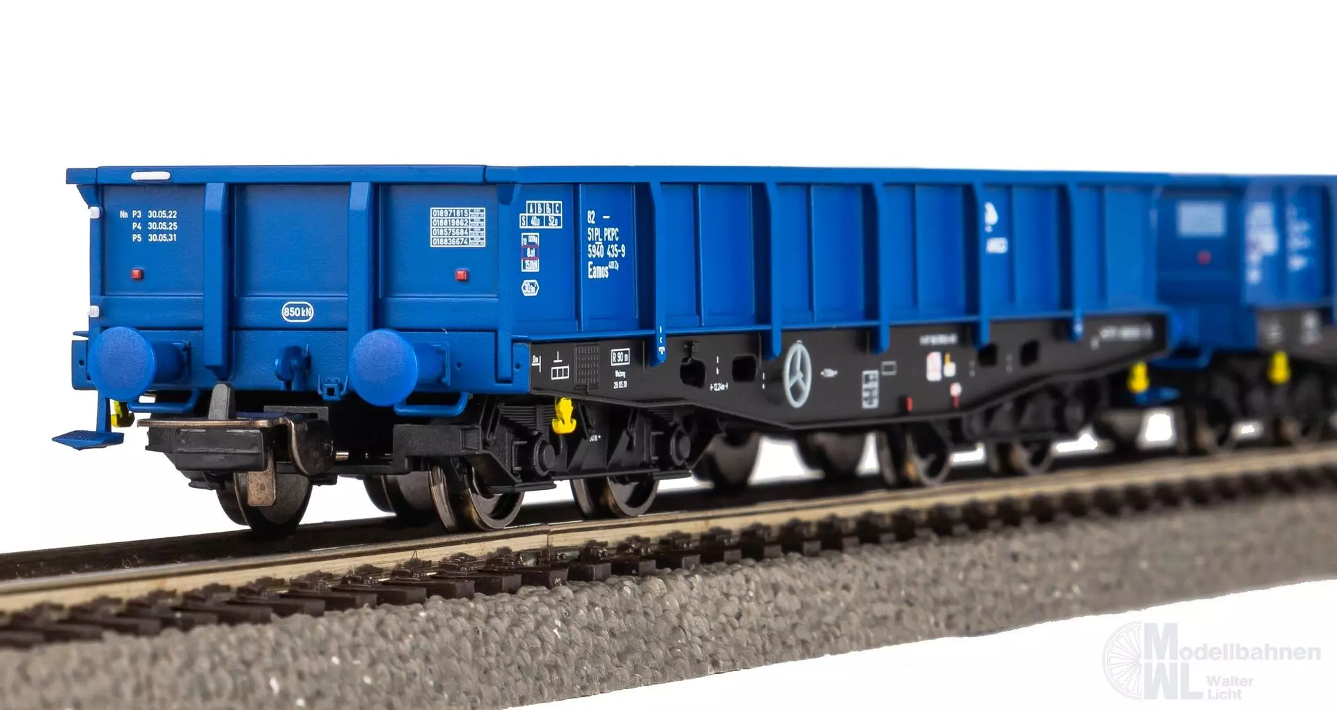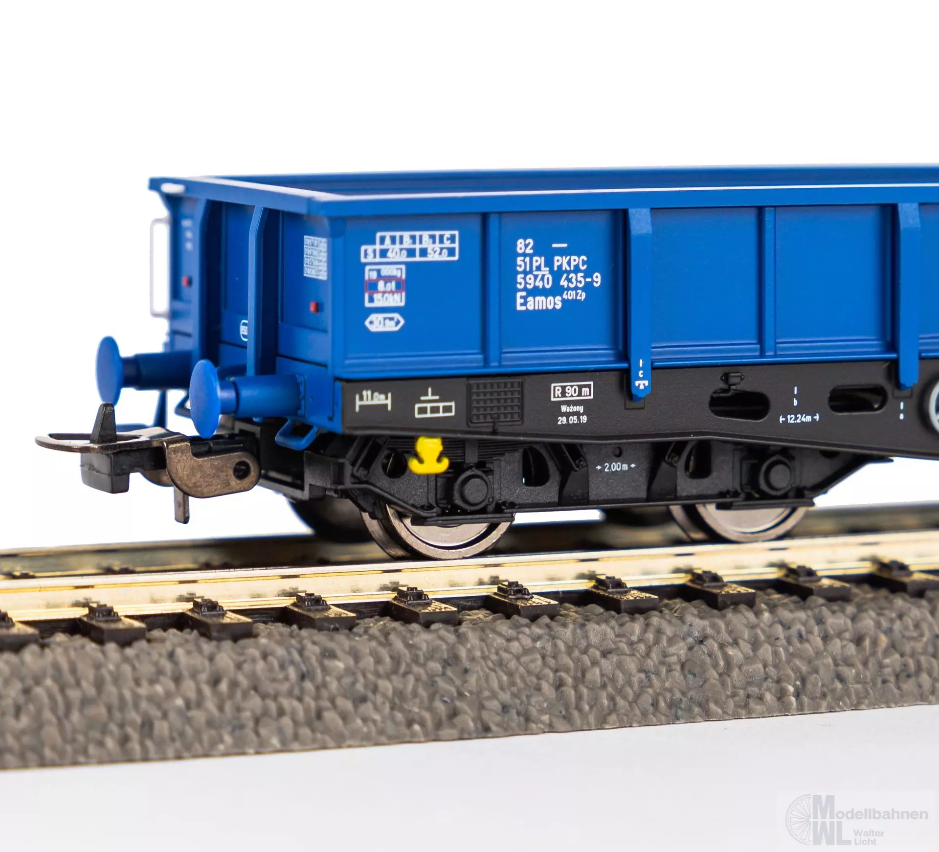 Neuheit 2024: Wagenset bestehend aus zwei Niederbordwagen der PKP Cargo in Epoche VI. Die Wagen 401Z der PKP besitzen detaillierte Nachbildungen der Seitenwände und, je nach Bauart, unterschiedliche Blech oder Holzbodentypen. Weiterhin überzeugen die Wagen durch die feine Lackierung und Bedruckung und besitzen Kurzkupplungskulissen und, abhängig von ihrem Vorbild, u.a. angesetzte Handräder, Rangiertritte, Handstangen an den Stirnseiten und Bremsschläuche. Die Ketten und Keile zur Befestigung der Seitenwände weisen filigrane und scharfe Gravuren auf. Durch die hervorragenden Rolleigenschaften eignen sich die Wagen gleichermaßen sehr gut für den Einsatz in Ganzzügen oder gemischten Güterzügen.