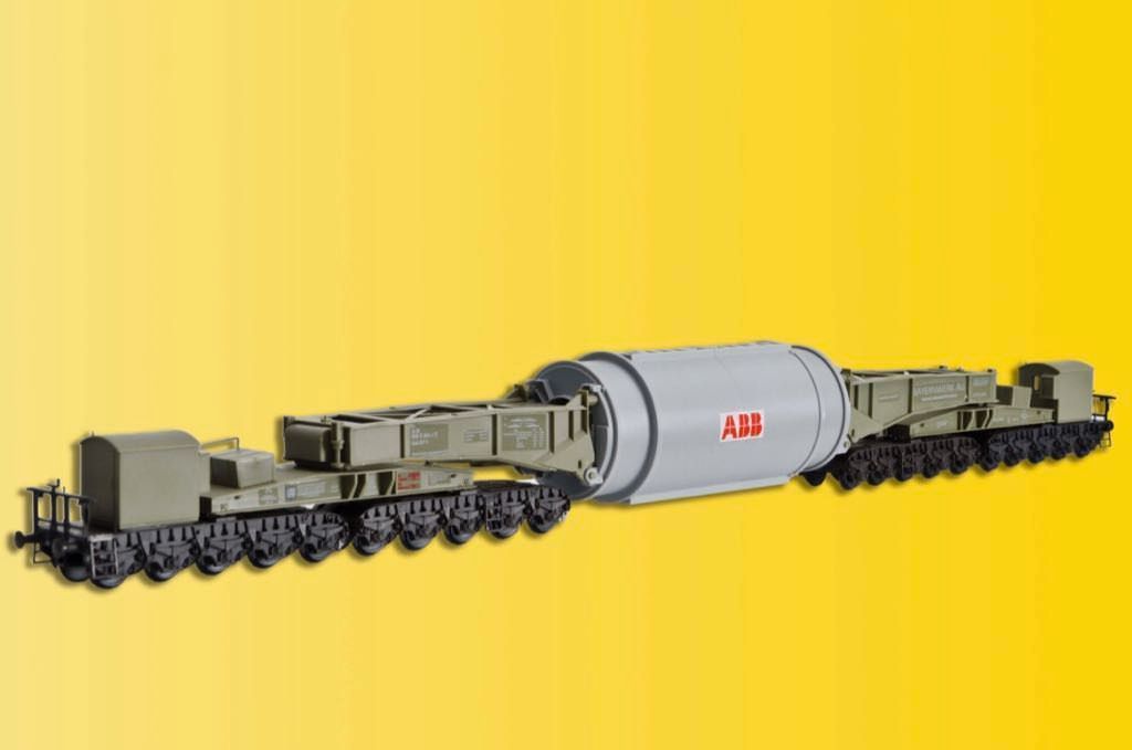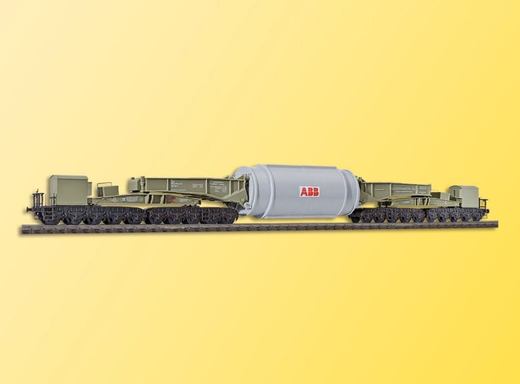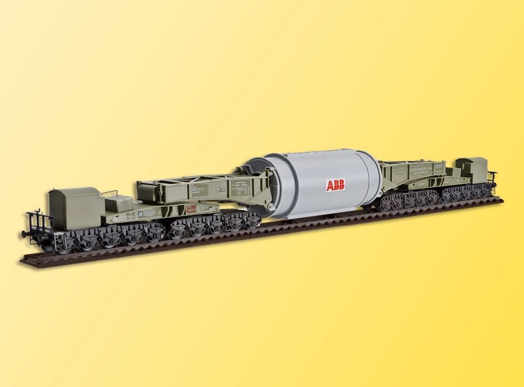 Bausatz. Tragschnabelwagen mit 20 Radsätzen. Vorbilddaten: LüP abhängig vom Ladegut 14 - 44 m, mit kurzgekoppelten Tragschnäbeln 32 m, Eigenmasse leer mit Tragschnäbeln 117 - 124 t, Tragfähigkeit 240 - 275 t, Höchstgeschwindigkeit unbeladen 90 km/h, beladen 40 km/h, Baujahre 1956 - 1961. Mit NEM-Schacht. Maße: LüP 50 x B 5 x H 5,8 cm. Schwierigkeitsgrad: 2 (Fortgeschrittene).