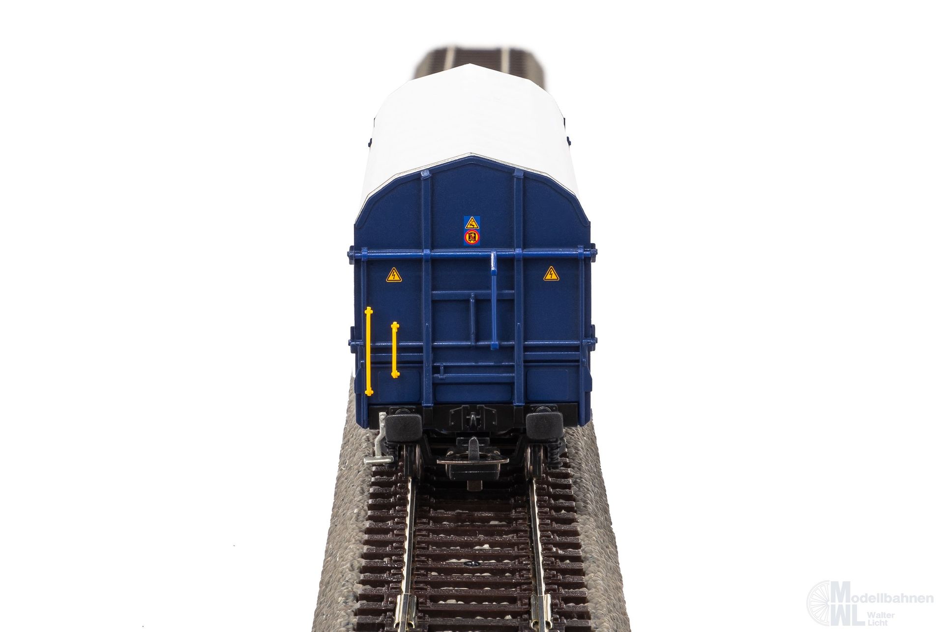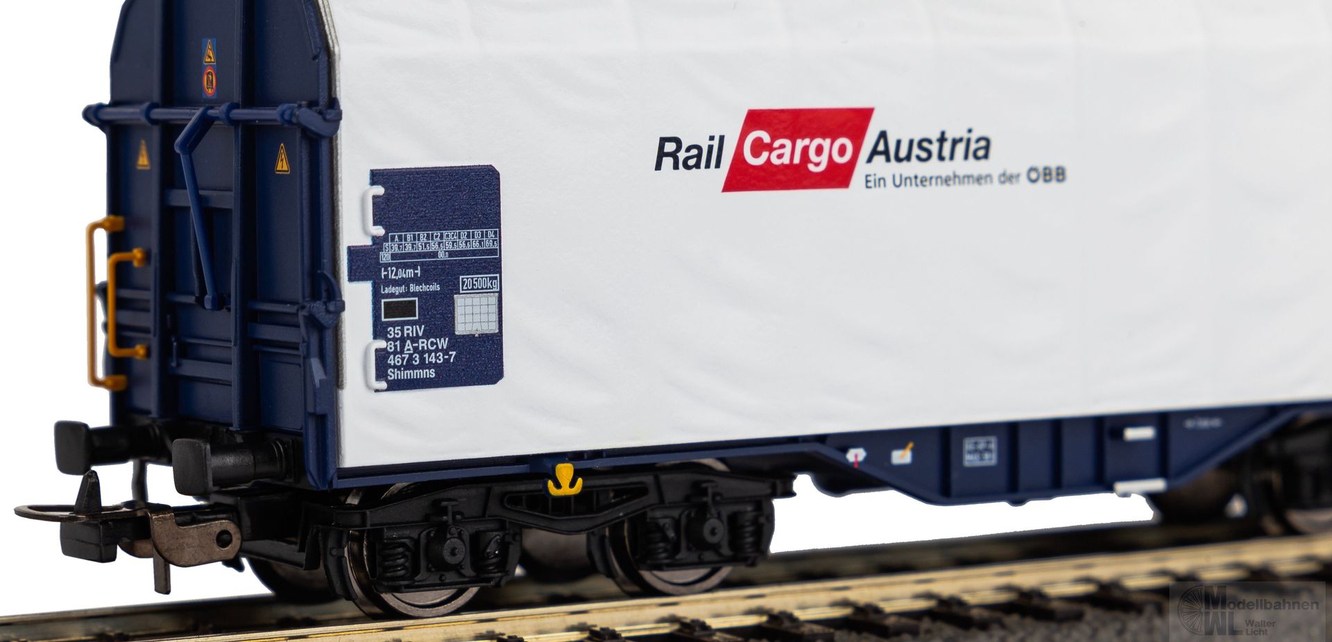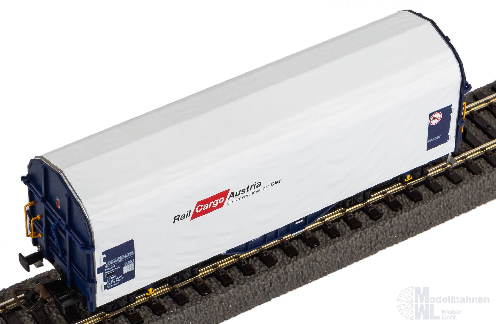 Neuheit 2024: Druckvariante des Schiebeplanenwagens im Design der Rail Cargo Austria in Epoche VI. Das Modell überzeugt durch die realistische Wiedergabe der Planen, konturenscharfe Bedruckung und exzellente Rolleigenschaften.