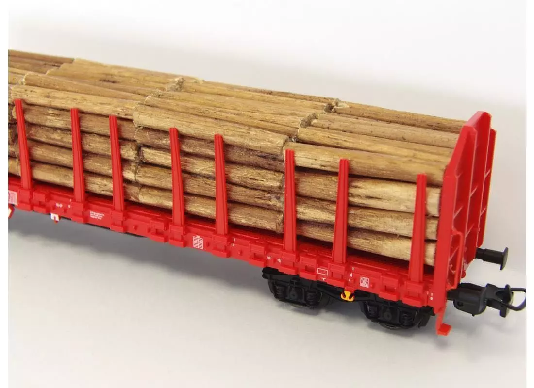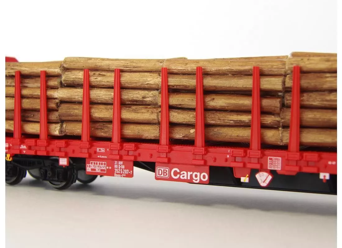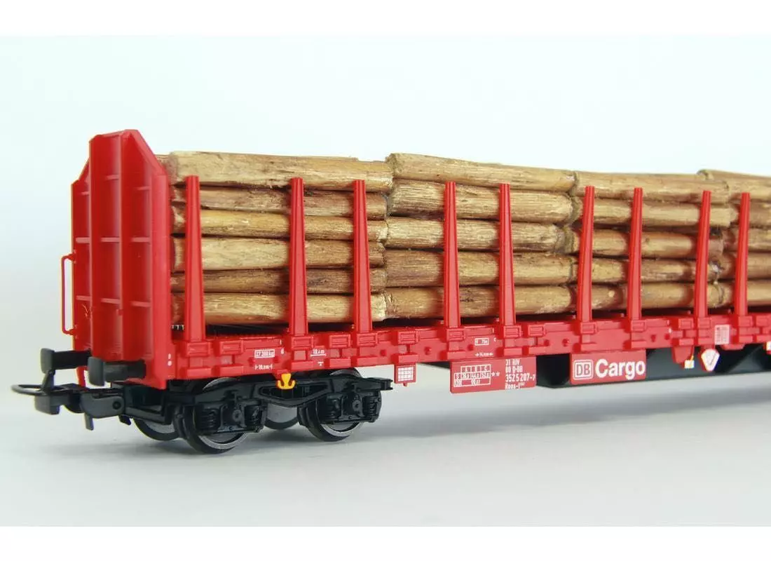 Druckvariante der DB Cargo in Ep. V mit Echtholzladung und klappbaren Rungen