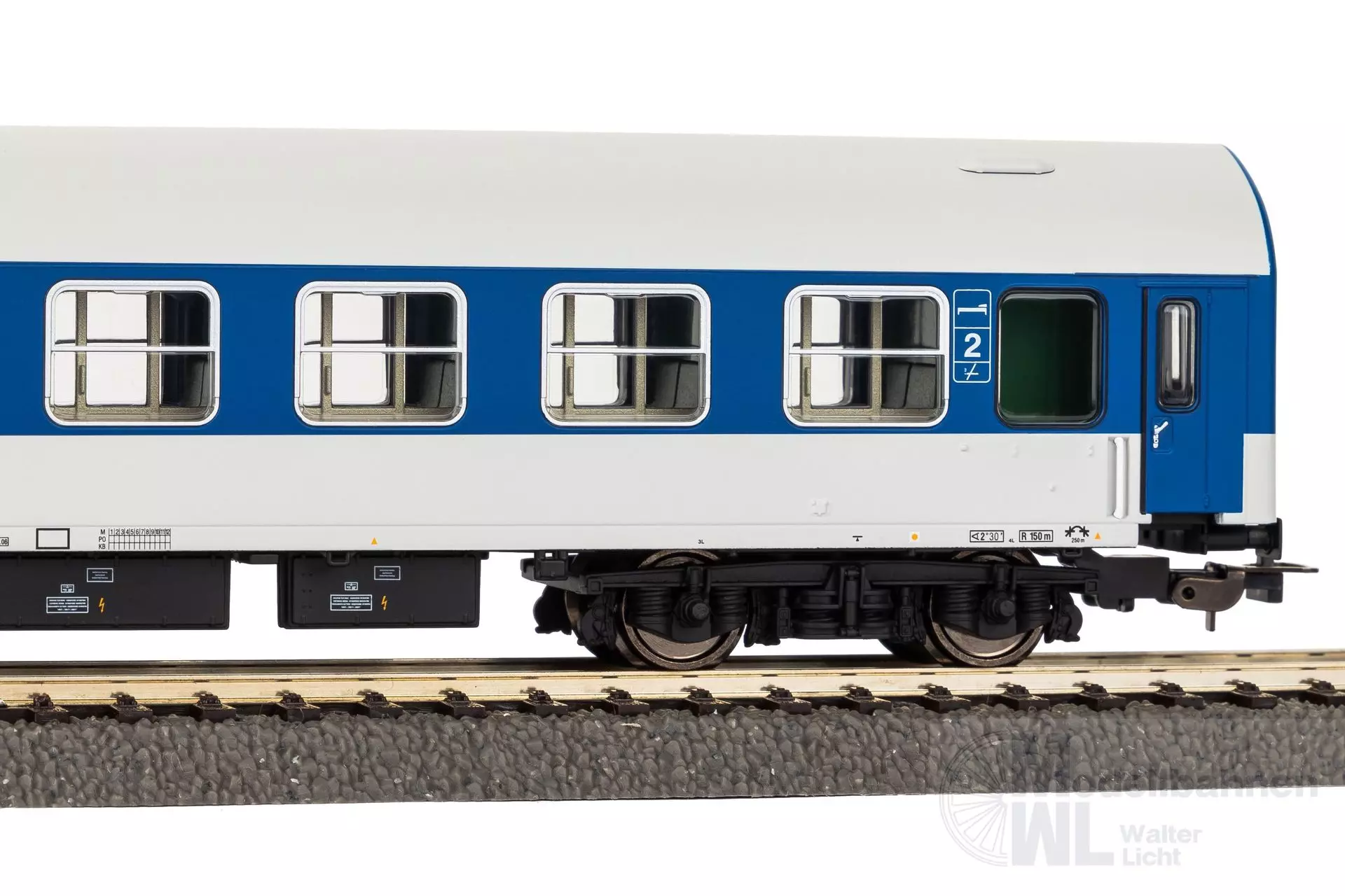 Neuheit 2023: Druckvariante des Y-Wagen als 2. Klasse Liegewagen der ?D in der Epoche V. Die PIKO Modelle der Y-Wagen zeichnen sich durch eine exakt maßstäbliche Umsetzung der Vorbildfahrzeuge aus. Die scharfen und sehr plastisch wirkenden Gravuren im Bereich der Türen, aber natürlich auch an den fein durchbrochenen Drehgestellen, erzeugen einen hervorragenden Gesamteindruck. Dies gilt in Stromsystem: Gleichem Maße für den Wagenboden und die hier vorhandenen Aggregate. Die präzise geführteKurzkupplungskinematik sorgt im Zusammenspiel mit der optionalen PIKO Kurzkupplung für einen vorbildgerecht geschlossenen Zugverband. Eine zusätzliche Aufwertung erfahren die Wagen durch die einfach zu montierende Innenbeleuchtung – mit ihr werden die Wagen beim nächtlichen Anlageneinsatz zu einem absoluten Blickfang!