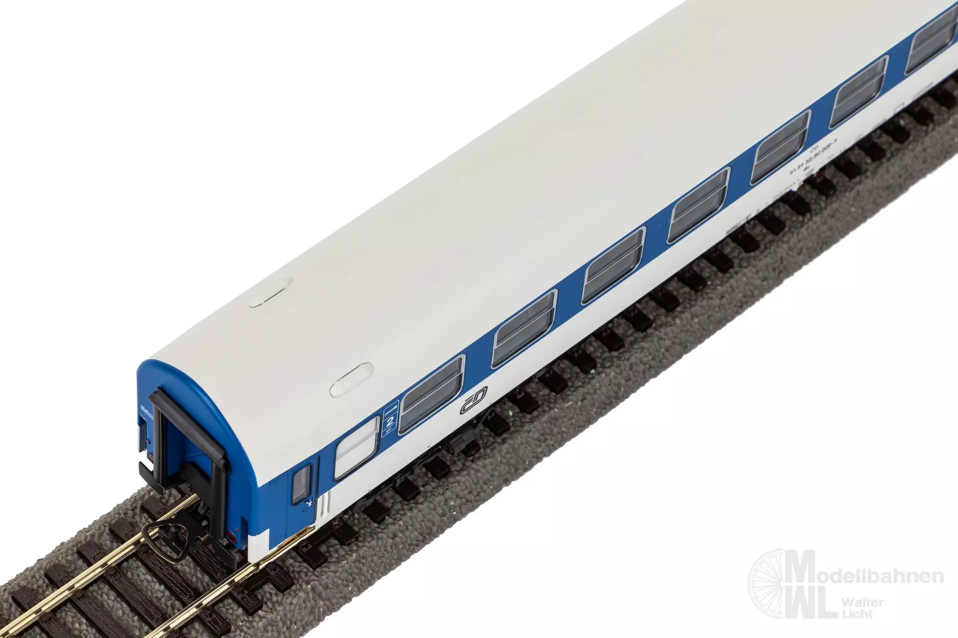 Bahngesellschaft: CD Epoche: V Länge über Puffer: 282 mm Mindestradius: 358 mm Stromsystem: Gleichstrom NEM Schacht + Kurzkupplungskulisse Innenbeleuchtung nachrüstbar mit #56270