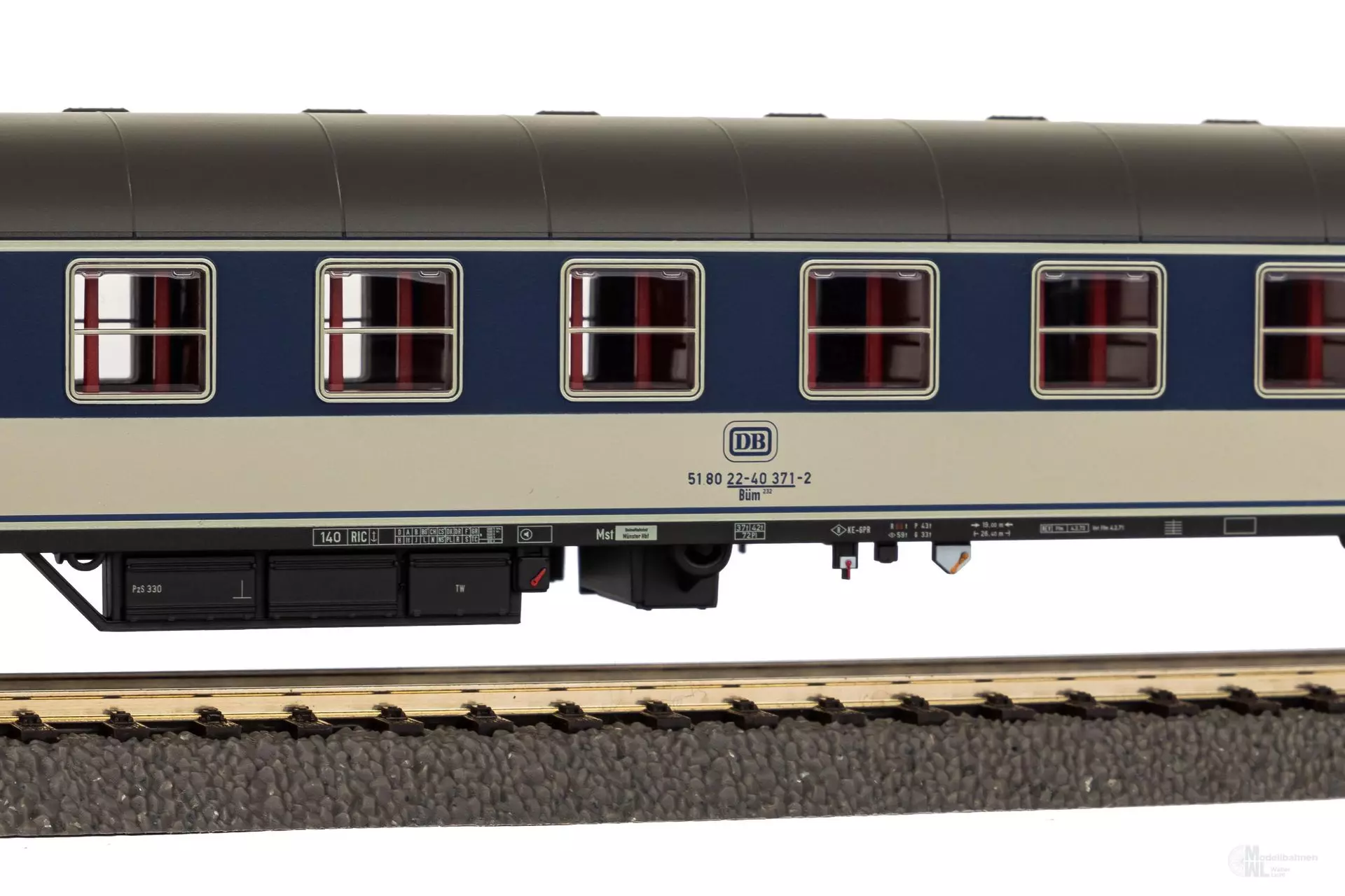 Bahngesellschaft: DB Epoche: IV Länge über Puffer: 303 mm Mindestradius: 358 mm Stromsystem: Gleichstrom NEM Schacht + Kurzkupplungskulisse Innenbeleuchtung nachrüstbar mit #56144