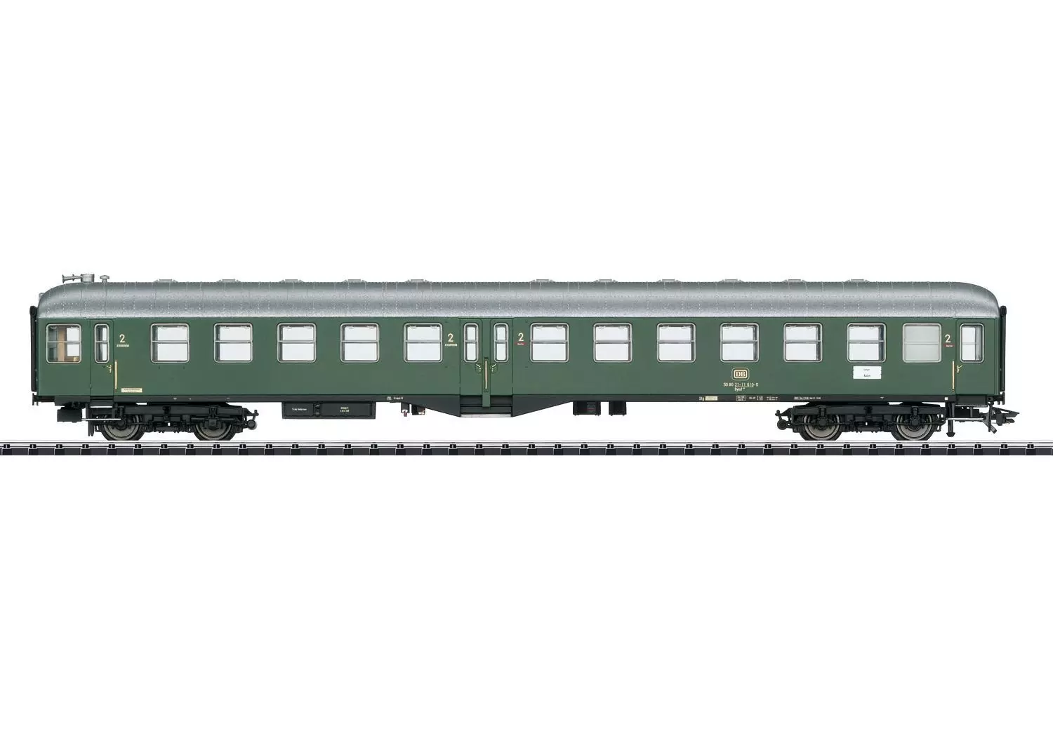 Vorbild: Steuerwagen 2. Klasse der Deutschen Bundesbahn (DB) für sogenannte leichte Schnellzüge (LS). Bauart Bymf 436 ohne Gepäckabteil. Umgangssprachlich auch als „Mitteleinstiegswagen“ bekannt. Ausführung mit stirnseitig oben liegenden kleinen Schlussleuchten und Übersetzfenstern an den Einstiegen am Wagenende. Farbgebung in Chromoxidgrün. Betriebszustand um 1969.