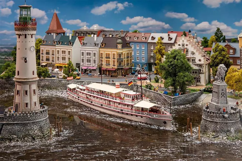 Maßstäbliches Modell des Art déco Bodensee-Fahrgastschiffes, das seit 1928 bis heute auf dem Bodensee verkehrt. Das Modell zeigt die heutige Bauform nach der Restaurierung 2019.