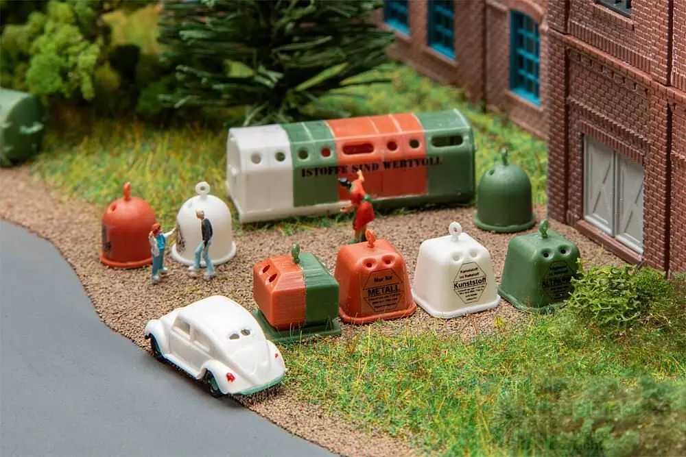 Produktinformationen "Faller 272567 - Wertstoffcontainer-Set N 1:160"