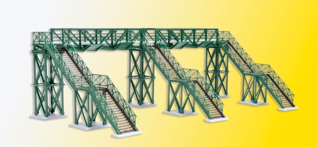 Bausatz. Solche Übergangsstege verbinden elegant die Bahnsteigpodeste und führen die Fahrgäste sicher über die gefährlichen Gleise der Bahnhofsanlagen. Die Treppenaufgänge sind in verschiedenen Varianten aufbaubar. Durchfahrtshöhe: 4,5 cm. Durchfahrtsbreite: 6,7 cm. Maße: L 18 x B 8,5 x H 6 cm. Schwierigkeitsgrad: 2 (Fortgeschrittene).
