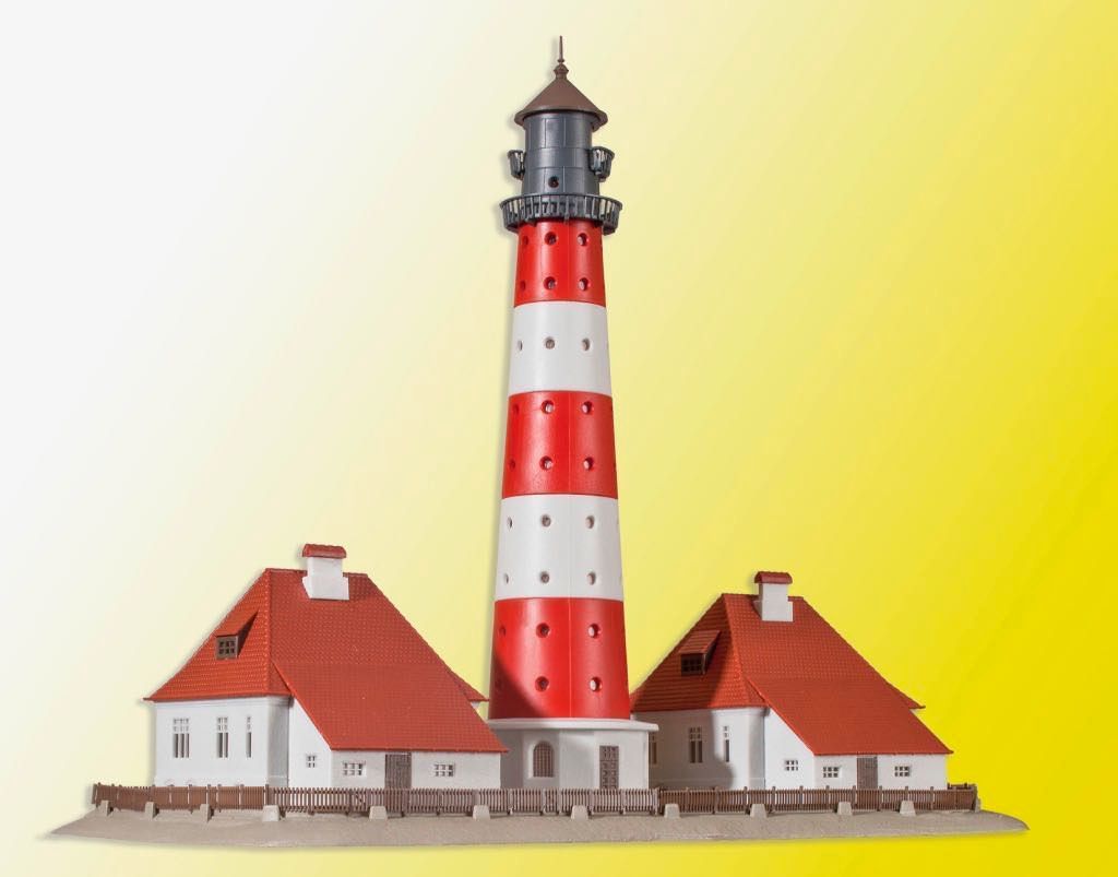 Funktionsbausatz. An der Nordseeküste steht das Original auf dem Westerheversand. Das Modell wurde dem Vorbild bis ins Detail nachempfunden, z. B. die doppelte Galerie mit dem äußeren Zugang zum Laternenraum an der Spitze des Turmes. Entsprechend dem Vorbild sind auch die Bullaugen als typische Merkmale in den 9 Etagen ausgeführt. Mit Stecksystem. Maße: L 27 x B 14,5 x H 23 cm. Schwierigkeitsgrad: 2 (Fortgeschrittene).