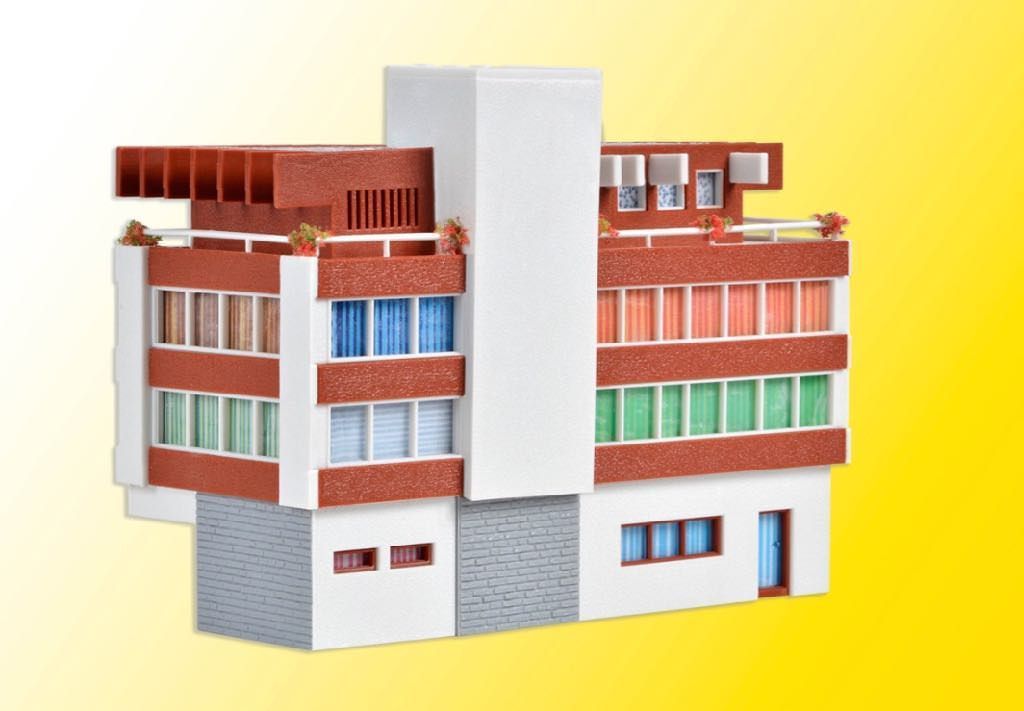 Dieses Gebäude entspricht dem Baustil der 50er und 60er Jahre des vergangenen Jahrhunderts. Ein Zweckbau ohne große Dekorationselemente. Maße: L 11,5 x B 5,5 x H 9 cm.