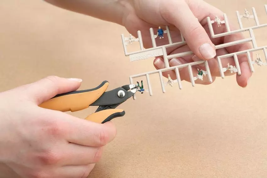 Bislang war die individuelle Bemalung von Figuren eine mühsame Angelegenheit – die in viele kleine Teile zerlegten Figuren mussten zunächst einzeln vom Spritzling abgetrennt und anschließend aufwändig zusammengeklebt werden. Dank der Entwicklung einer speziellen Spritzgussform entfällt der Zusammenbau der Figuren vor dem Bemalen – diese sind bereits in einem Stück am Spritzling. Die Bemalung der Figuren kann ganz einfach direkt am Spritzling erfolgen, dadurch haben Sie beim Bemalen das Modell immer fest im Griff. Nachdem die Figur vollständig bemalt und die Farbe getrocknet ist, wird sie einfach vom Spritzling getrennt und in die Modell-Landschaft geklebt. Die Farben, können Sie bei Ihrem Fachhändler kaufen. Revell® bietet ein großes Sortiment an Farben, aus denen Sie für die Bemalung Ihrer Figuren wählen können.
