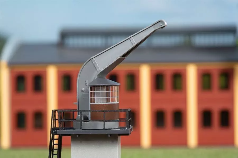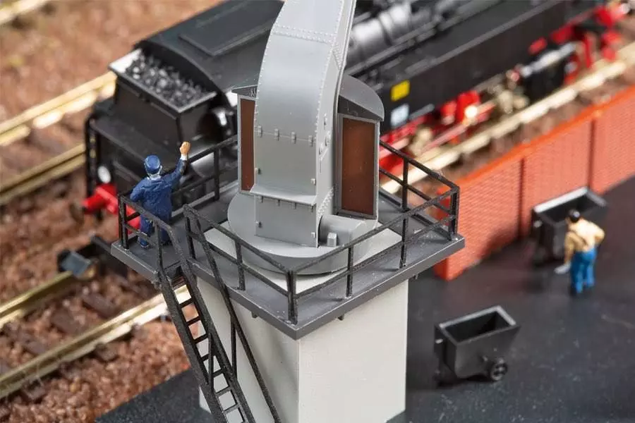 Das Vorbild dieses Bekohlungskranes wurde 1912 gebaut und steht jetzt in Chemnitz. Die Beladung der Dampflokomotiven wurde damit sehr erleichtert. Der Kran ist drehbar und zum Einbau eines Servos vorbereitet. Mit Kohlebansen und 3 Hunten.