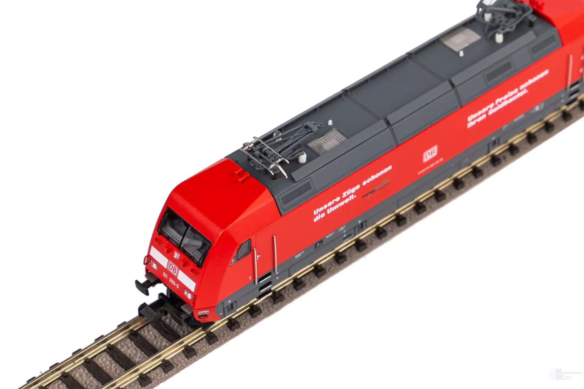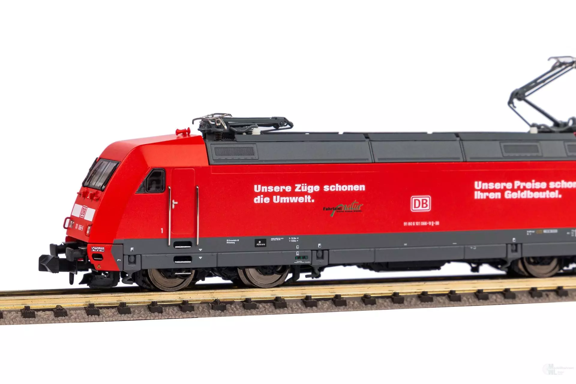 Neuheit 2023: Die BR 101 im Design Unsere Preise der DB AG in Epoche VI. Bei der Umsetzung der Baureihe 101 im Maßstab 1:160 hat PIKO die äußere Gestaltung der Drehstromlokomotive perfekt getroffen. Details wie die Einholm-Stromabnehmer vom Typ DSA 350 wurden filigran nachgebildet. Die scharf gravierten Drehgestelle hinter den tief heruntergezogenen Schürzen runden den optischen Eindruck der Lok hervorragend ab. Für Vortrieb sorgt im Modell ein kraftvoller Mittelmotor. Zwei Messingschwungmassen auf der Motorwelle schaffen ausgezeichneten Stromsystem: Gleichlauf. Für gute Traktion besitzt die Lok zudem zwei diagonal angeordnete Räder mit Haftreifen belegt sind. Neben der Spitzenbeleuchtung in LED-Technik verfügt das Modell auch über eine Führerstandsbeleuchtung. In der Soundausführung besitzt die BR 101 ab Werk einen passenden PIKO Sound-Decoder.