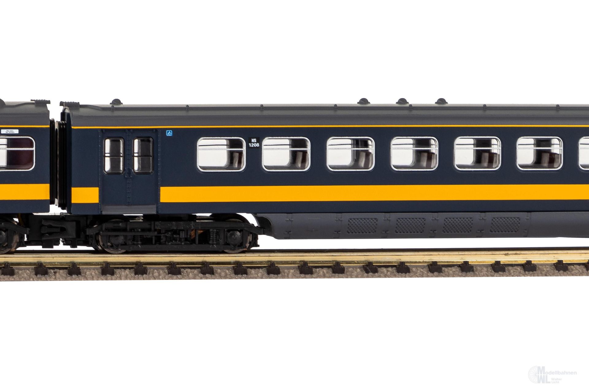 Bahngesellschaft: NS Epoche: III Länge über Puffer: 320 mm Mindestradius: 228 mm Digitalschnittstelle: NEM 658 PluX12 Anzahl Achsen angetrieben: 2 NEM Schacht / keine Kurzkupplungskulisse Fahrtrichtungsabhängiger LichtStromsystem: Wechsel weiß / rot Schaltbare Innenbeleuchtung werkseitig ausgerüstet Spezialkupplung für Mehrfachtraktion liegt bei