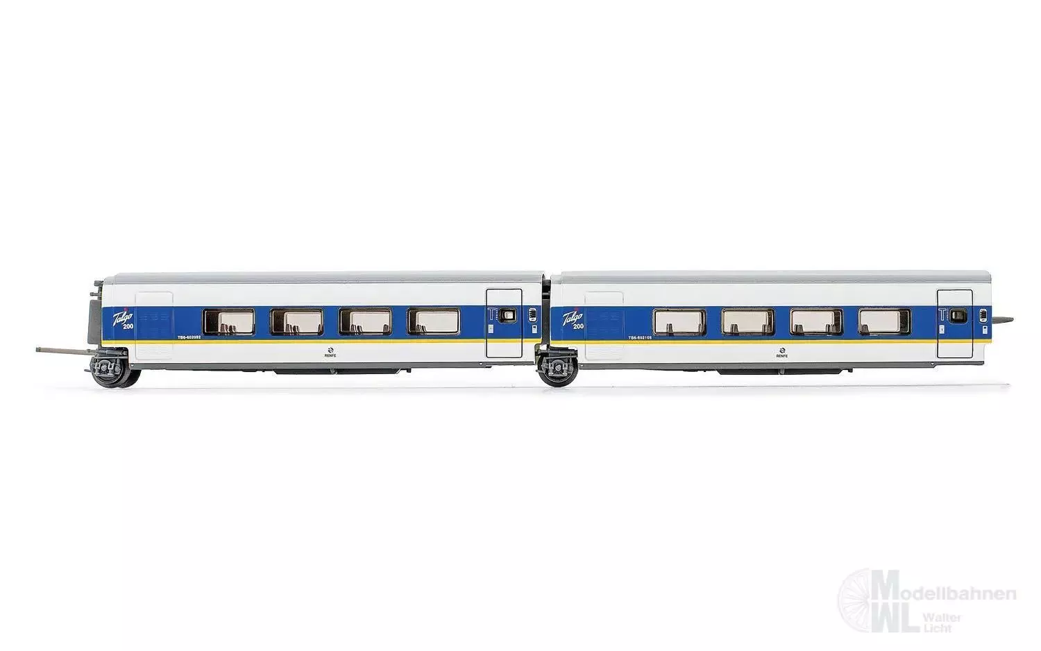 RENFE, 2-tlg. Ergänzungsset „Talgo 200” Turista Wagen, weiß/blauer Lackierung mit gelbem Streifen, Ep. V