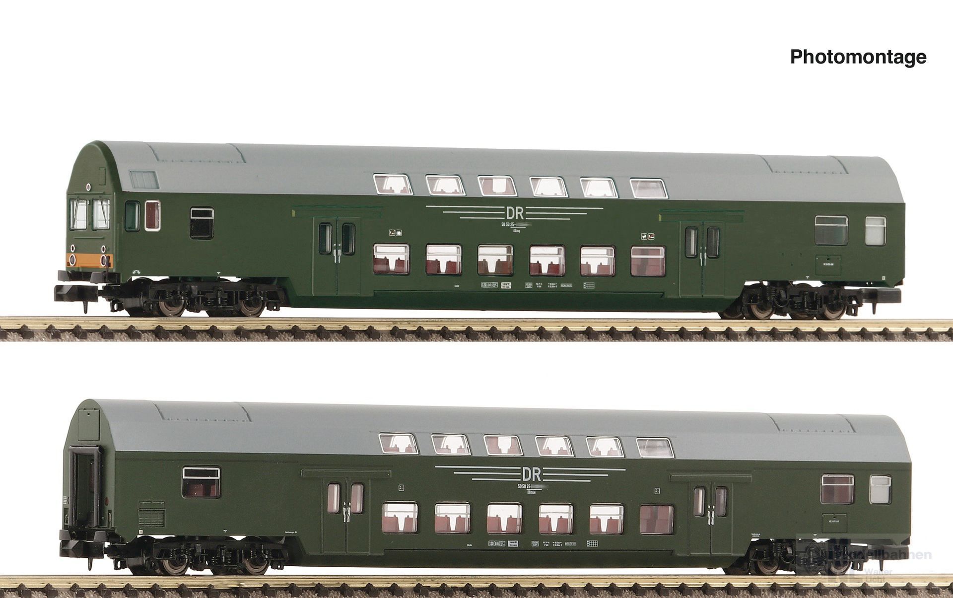 Produktinformationen "Fleischmann 6260041 - Doppelstockwagen Set DR Ep.IV 2.tlg. Mit Steuerwagen N 1:160"