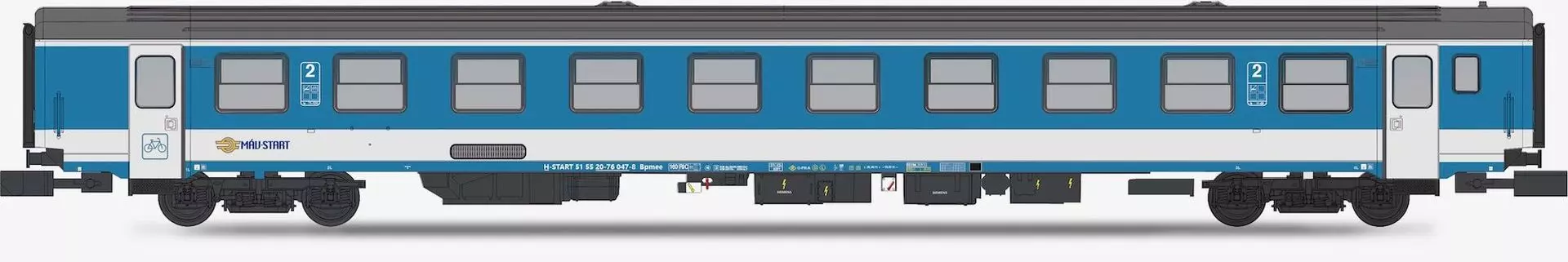3 tlg. Set mit 2 Inlandsreisezugwagen 2. Klasse und einem Steuerwagen der MAV. Steuerwagen mit Lichtwechsel und 6 pin Dekodersteckplatz Ep.VI
