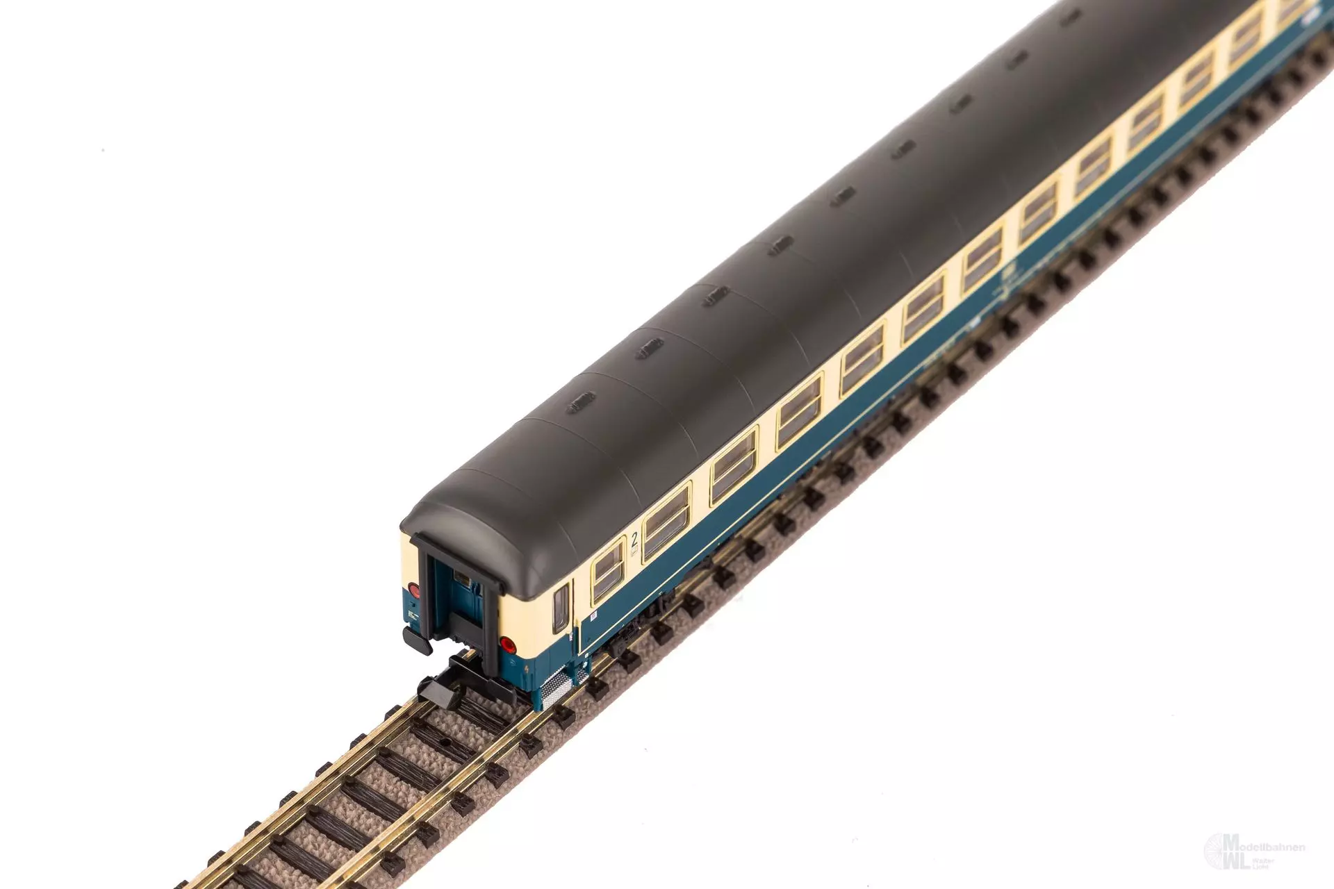 Neuheit 2023: Die IC Wagen der DB als komplette Neukonstruktion von PIKO im Maßstab 1:160. Das wegweisende Konzept des IC `79 wurde zu Beginn des Sommerfahrplans 1979 von der Bundesbahn mit dem bekannten Slogan „Jede Stunde, jede Klasse“ eingeführt. Dieser neue Weg wurde erforderlich, da die rein erstklassigen Intercitys zu diesem Zeitpunkt durch den anhaltenden Fahrgastschwund kaum noch wirtschaftlich zu betreiben waren. Mit der Einführung der zweiten Wagenklasse wurde Stromsystem: Gleichzeitig der Takt auf einen Stundenrhythmus angehoben. Angestrebte Verkürzungen der Reisezeiten erfolgten durch den Ausbau vieler Strecken und die Anhebung der Höchstgeschwindigkeiten. Diese beschleunigten Züge führten zur weiteren Zeitersparnis keine Gepäck- und Postwagen mehr und waren für ein schnelles Umsteigen in den Knotenbahnhöfen in die Blöcke 1. Klasse, Speisewagen und 2. Klasse unterteilt. Nach dem Erfolg des Konzeptes wurde 1985 das IC-Netz von vier auf fünf Linien erweitert. Bis heute stellt der IC ein wichtiges Rückgrat im Fernverkehr der Bahn dar.