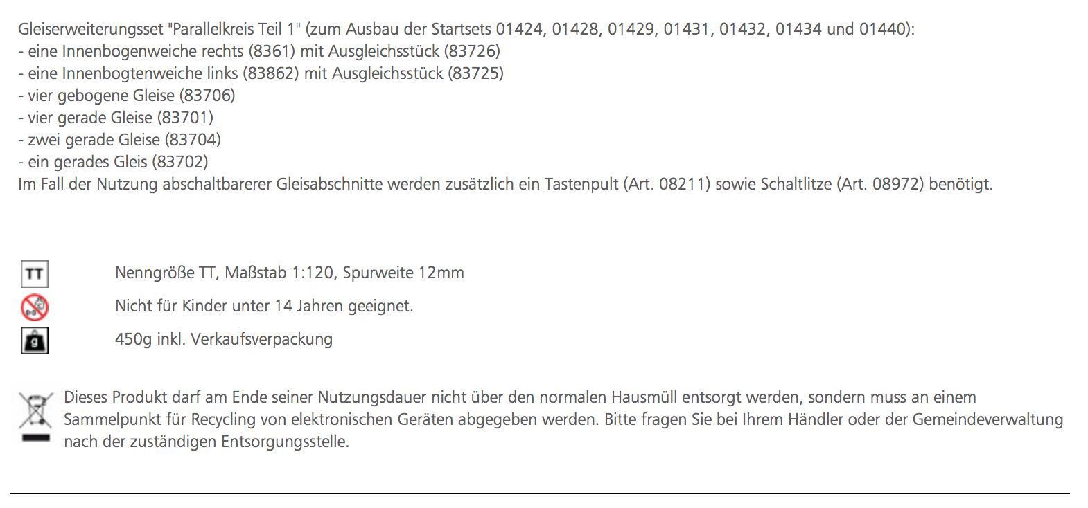 Gleiserweiterungsset "Parallelkreis Teil 1" (zum Ausbau der Startsets 01424, 01428, 01429, 01431, 01432, 01434 und 01440):