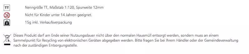 Eigenschaften "Tillig 83143 - Anschlußgleis G1 166 mm mit Entstördrossel - NICHT FÜR DIGITAL TT 1:120"