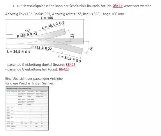 Passender Weichenantrieb je 1 x 83531/83532 oder 2 x 86112